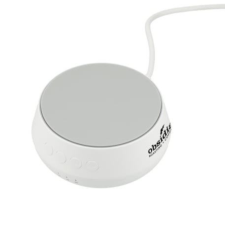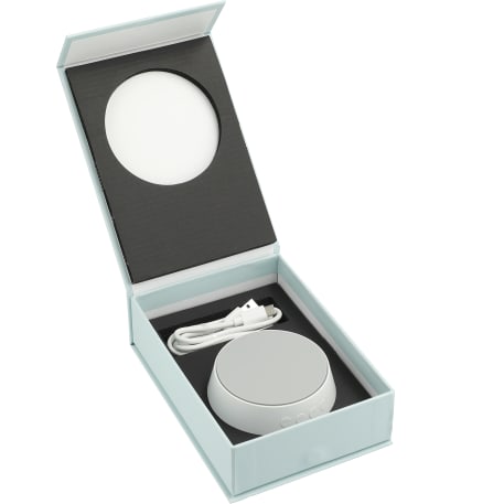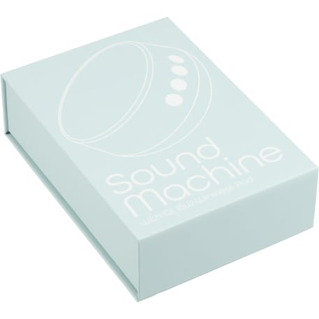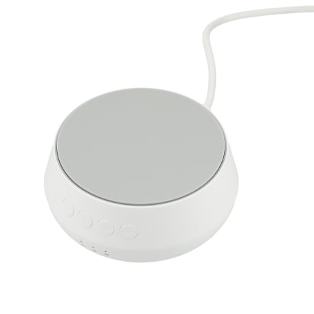 The Sound Machine with Qi 15W Wireless Charger plays 26 different kinds of soothing sounds (including water, birds, train, pendulum, etc.) to help you sleep while it charges your phone. Leave the sound machine on all night or use the optional timer, which can be set for 15, 30 or 60 minutes. Supports three different wireless charging modes: up to 7.5W for iPhone X/8/8 Plus/XS/XS Max/XR/11/11 Pro/11 Pro Max/12/12 Pro/12 Pro Max/12 Mini/13/13 Pro/13 Pro Max/13 Mini; up to 15W for Samsung Galaxy S9/S9 Plus/S8/S8 Plus/Note 8/9 and more, and 5W standard charging for all other enabled devices. It is recommended to use a quick-charge power adapter (not included) for fast charging. Qi-certified. Includes a 39-inch USB-A-to-Type-C charging cable. Packaged in a FSC®-certified premium gift box.