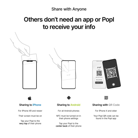 The Popl Digital Business Card is the last business card you'll ever need. This premium polyvinyl card comes with built-in Popl technology + iconic circle QR code for instant sharing. Tap your Popl Card to the back of any compatible smartphone or use the QR code on the back to instantly share your contact info, social media, websites, payment apps and more. The other person doesn't need an app or a Popl to receive your info!