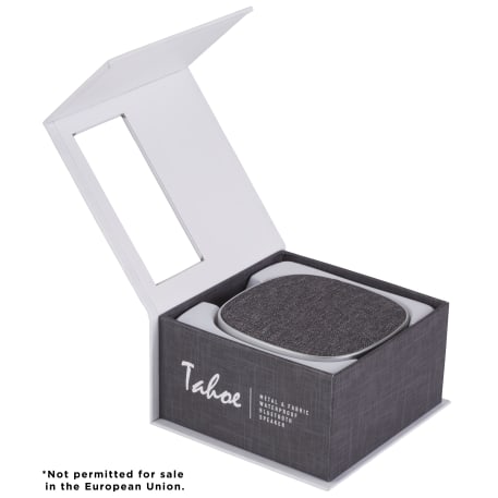 Take fashion with you into the great outdoors! The Tahoe Bluetooth Speaker features a durable metal speaker body with an on trend fashion speaker grill. With an IPX5 Waterproof rating the speaker can withstand any condition. Plus if two speakers are purchased they can be synced to each other to create True Surround Sound. Built in Microphone and Music Controls. Bluetooth Working range is 33ft. Bluetooth Version 4.2. Playback time at max volume 8hrs. Charging time 3hrs. 3 Watt Speaker Output. Sales, Resale's and Distribution of this product to the EU are expressly prohibited.
