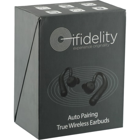 The ifidelity Auto Pair True Wireless Bluetooth Earbuds are the future of Bluetooth audio. As you see, there is no wire connecting the earbuds. Once the earbuds are removed from the charging case they’ll be paired together automatically. Making these earbuds user friendly for any type of consumer. With 5 hrs of playback time at max volume, you won’t have to worry about recharging constantly. Once the earbuds are placed back into the charging case, they’ll begin to recharge. The case will recharge the earbuds 4x from 0-100% capacity. To charge the case, place it on a wireless charging pad or charge with the provided micro USB cable. The hook design on the earbuds keep them secure during your commute or daily workout. With an IPX4 sweat resist rating you won’t have to worry about damaging your earbuds during your workout. The earbuds feature built in music controls, one touch Siri/Google Assistant activation, and a microphone for hands free operation. Bluetooth Version 5.0.
