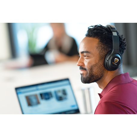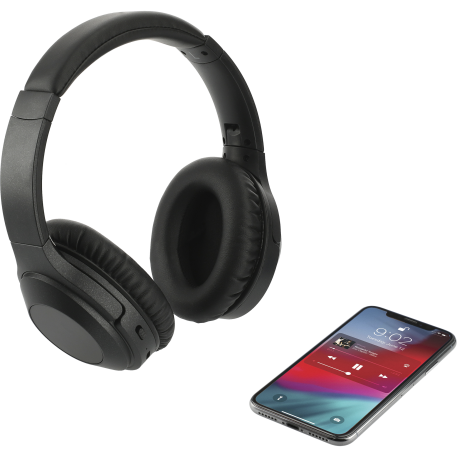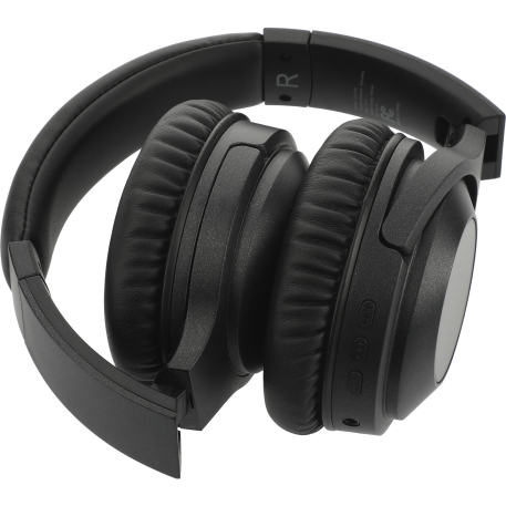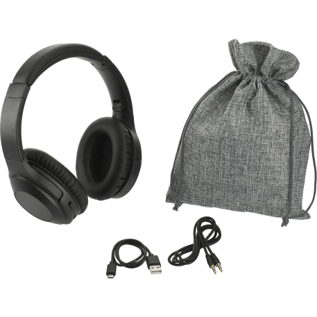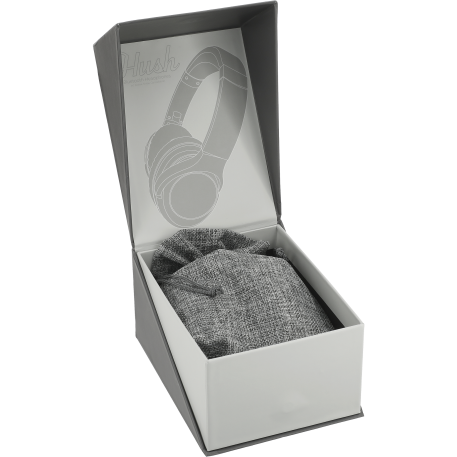 Become immersed in your music with the Hush Active Noise Cancellation Bluetooth Headphones. These headphones deliver premium stereo sound up to 15 hours at max volume. When the active noise cancellation is turned on it will block out up to 20-23db of sound. Allowing you to enjoy your long flight, train ride, or day in the office without any disruptions and in comfort with the memory foam earpads. The built-in music controls and microphone allow you to control your audio and answer a call without reaching for your phone. With a collapsible and flexible design, the headphones can be carried in the provided woven pouch or around your neck. Music can be enjoyed through Bluetooth or with the provided 20” 3.5mm Aux Cable. Playback time at max volume with ANC On: 10hrs. Charging Time: 2hrs Bluetooth Version 5.0. Micro USB charging cable provided. Bluetooth working range is 10 meters (33 feet).