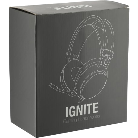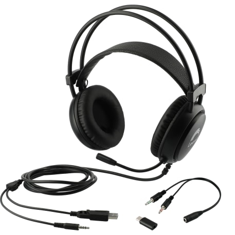 The Ignite Gaming Headphones deliver high-quality stereo sound with a premium built-in microphone. They include an 85” wired cable with a 3.5mm Aux tip and USB-A Male connector. The 3.5mm Aux input provides audio and voice when connected to a computer or mobile device. A 3.5mm 2-in-1 Aux adapter is included for PCs with both microphone (Red) and audio (Green) inputs, and a Type-C adapter is included for devices with Type-C inputs. With the included adapters and built-in cable, the Ignite Gaming headphones are compatible with all major PCs, laptops, cell phones, tablets, PS4 and the Nintendo Switch. The built-in volume control on the earcups makes it easy to adjust the volume, and the extra padding in the earcups and adjustable headband allow for all-day use! This item must be lasered to reveal the light up function.