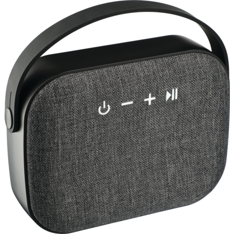 Enjoy exceptional sound of the Woven Fabric Bluetooth® Speaker. Be on trend with the knitted fabric cloth. The speaker has a soft touch but packs a punch with a 5 watt speaker driver. The built-in music control and microphone allows you to control the music and conference call from any location without touching your phone. Bluetooth® working range is 10 metres. Includes Micro USB to USB charging cable and 3.5mm audio cable. Playback time at max volume is 6 hours and charging time is up to 4 hours