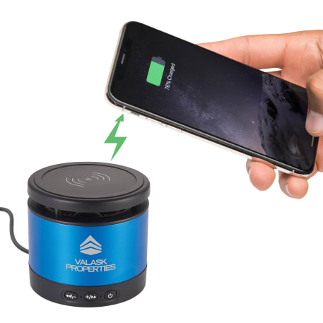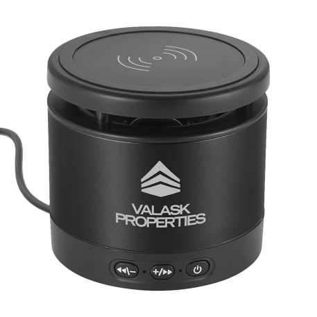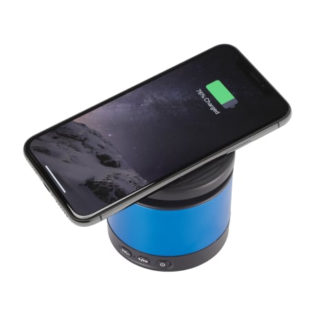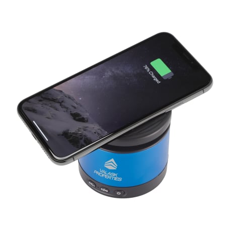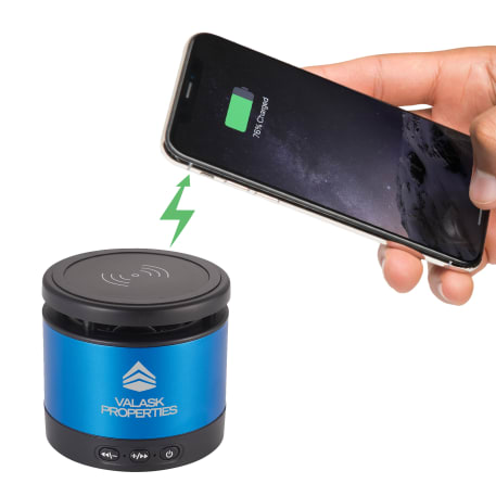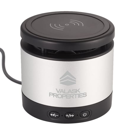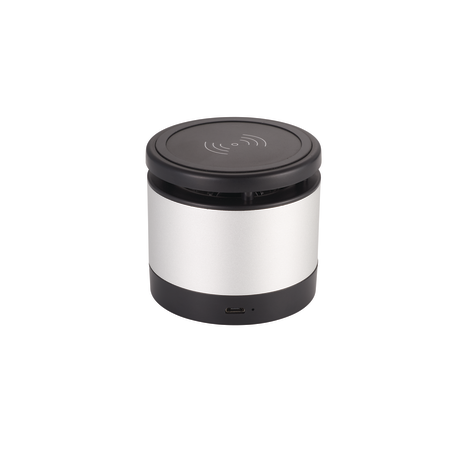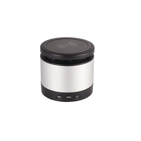 The Metal Bluetooth Speaker and Wireless Charging Pad combines premium sound quality with a convenient wireless charging pad. The Aluminum speaker body produces a crystal clear sound that can be heard for over two hours at max volume with a 3W output the Bluetooth Speaker will be sure to fill out your office or room with premium sound quality. The top part of the speaker is a wireless charging pad that can charge any wireless charging enabled device including the iPhone X. Includes a 2 in 1 USB Charging Cable and 3.5mm Aux Cable. Bluetooth Version 4.2. Bluetooth working range is 33ft.