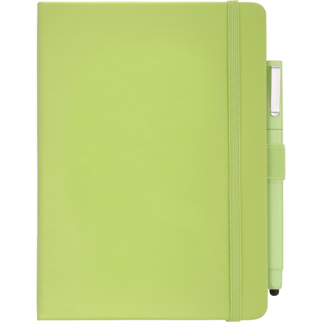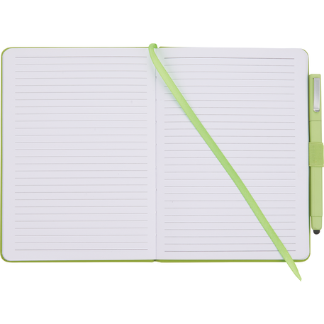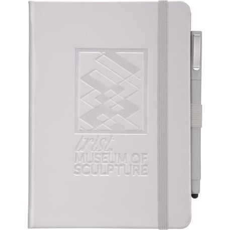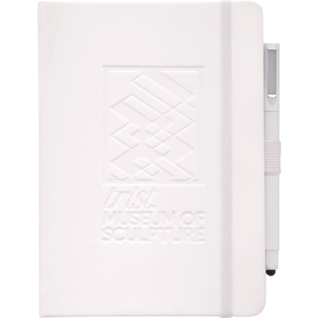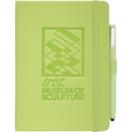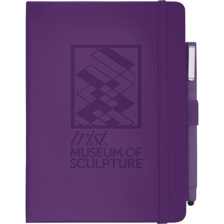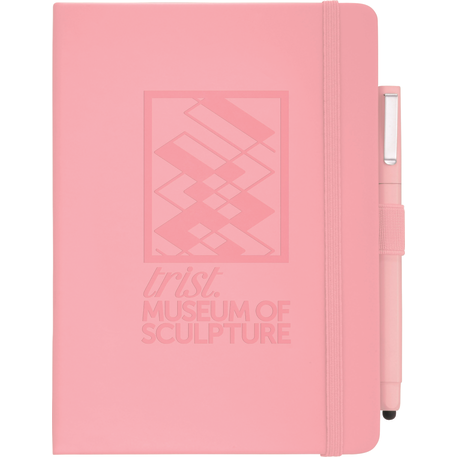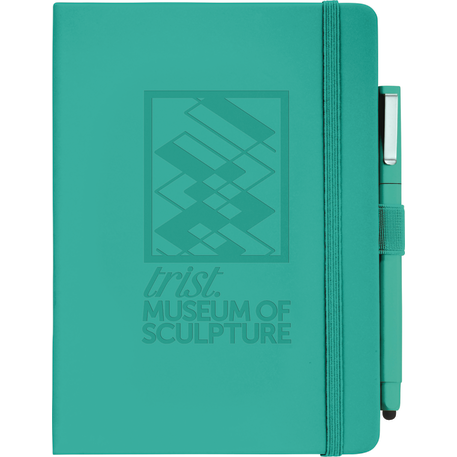 Set includes (2800-29) Vienna Hard Bound JournalBook and (6620-33) Ambassador Square Ballpoint Stylus. Soft touch, hard cover bound journal with built in elastic closure. Color matching elastic pen loop and ribbon page marker. Includes 72 sheets of white lined paper.