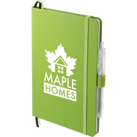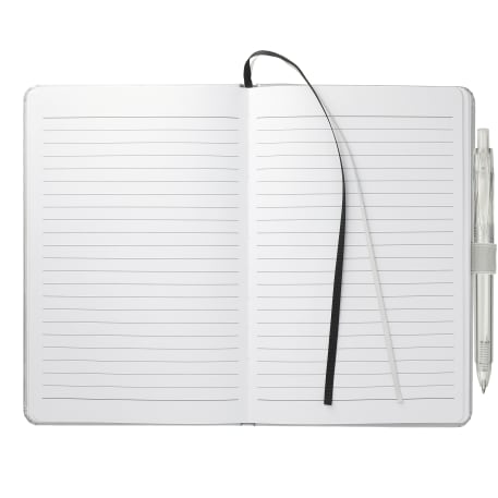 This set includes the (2800-82) 5.5" x 8.5" FSC® Mix Bound JournalBook® and (6003-29) FUNCTION RPET Quick-Dry Gel Pen features a FSC Certified paper cover with 80 sheets of white FSC certified soy based ink lined paper. Includes color-matching elastic closure, pen loop and ribbon page marker. Through a partnership with 1% For The Planet, one percent of sales of all EcoSmart® products are donated to environmental nonprofits.