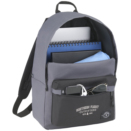 The exterior of Parkland bags is made with 100% recycled water bottles. A classroom classic. Say hello to the Parkland Kingston, a backpack designed with style and sustainability in mind. Ideal for school, travel and everything in between, the Kingston's durable exterior is made with recycled polyester and built to last. Its classic design provides plenty of room for storing your daily essentials, including a 15" laptop. Through a partnership with 1% For The Planet, one percent of sales of this and all EcoSmart products will be donated to nonprofits dedicated to protecting the planet.