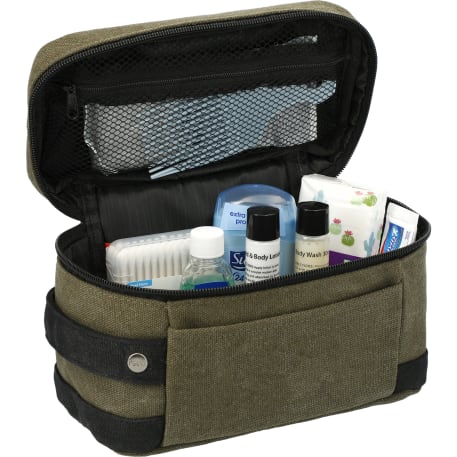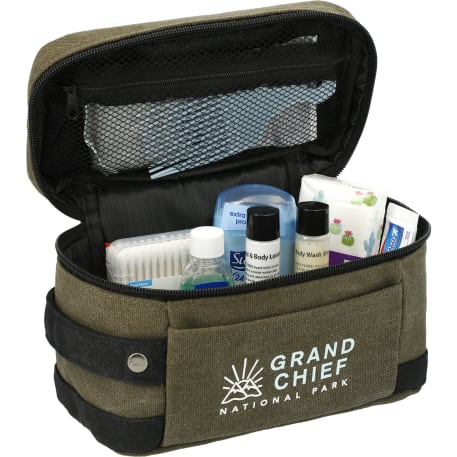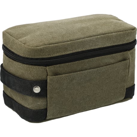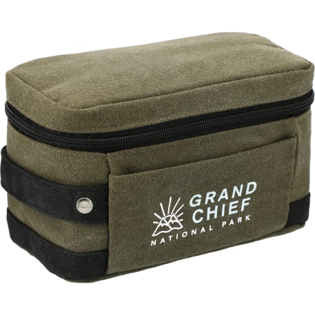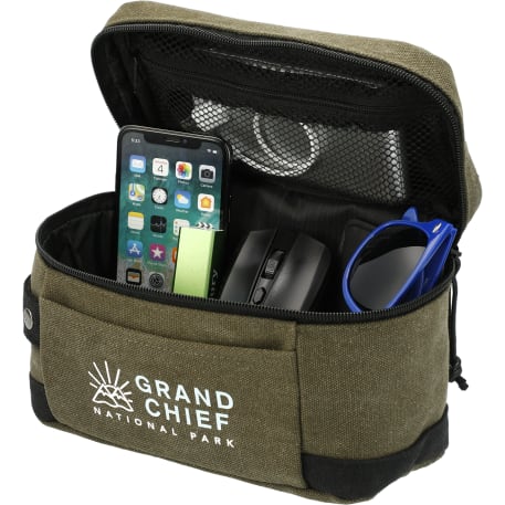 The Field & Co. Woodland Pouch is made from rugged cotton canvas. This pouch features a front slash pocket, internal zippered mesh pocket, and custom wood grain print lining.