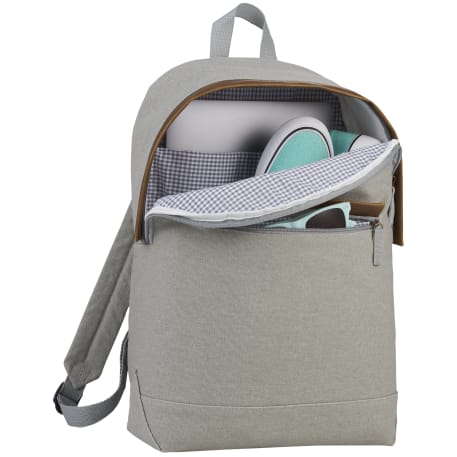The Field & Co. Book 15" Computer Backpack is made from sturdy cotton canvas and features on-trend vegan accents. This backpack features a large zippered main compartment as well as a front zippered pocket for extra storage. With a 15" laptop sleeve, this bag is ready to go with you to work or school.