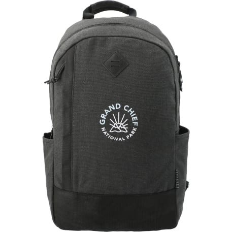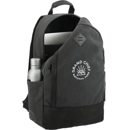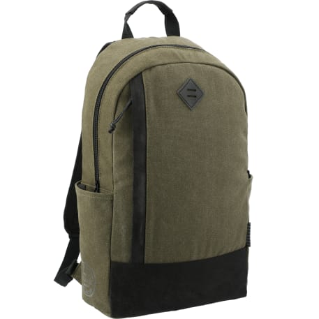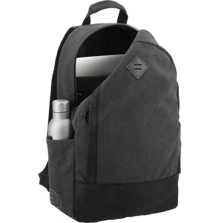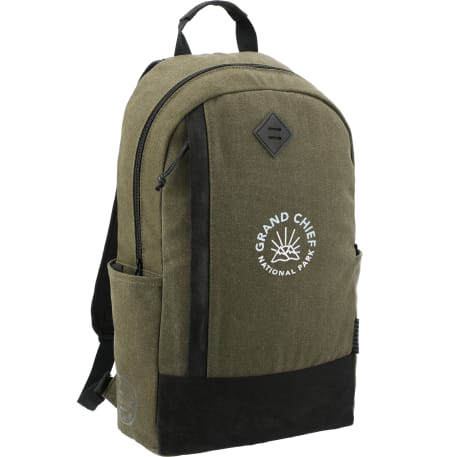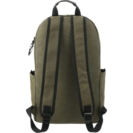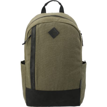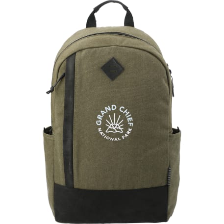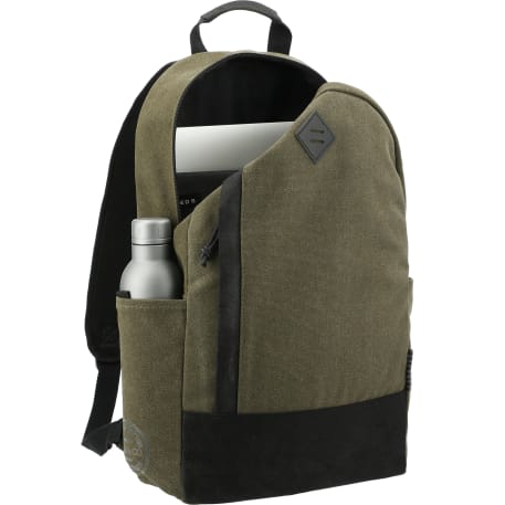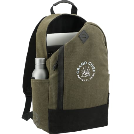 The Field & Co. Woodland 15" Computer Backpack is constructed from rugged cotton canvas, features a custom wood grain lining, and contains a padded 15" laptop sleeve inside its zippered main compartment. It also features a front zippered pocket for extra storage, a convenient water bottle sleeve, and a premium vinyl lash-tab. You can wear the backpack comfortably using its padded adjustable shoulder straps.