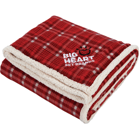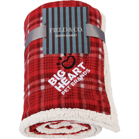 The Field & Co.® Plaid Sherpa Blanket features a classic look with timeless style. Super soft and cozy, a perfect luxurious comfort. Combines classic plaid with Sherpa backing with Field & Co.® vintage branding elements and details. Unfolded: 50 x 60 Free run charges for embroidery up to 10,000 stitches. This blanket is spot clean only.