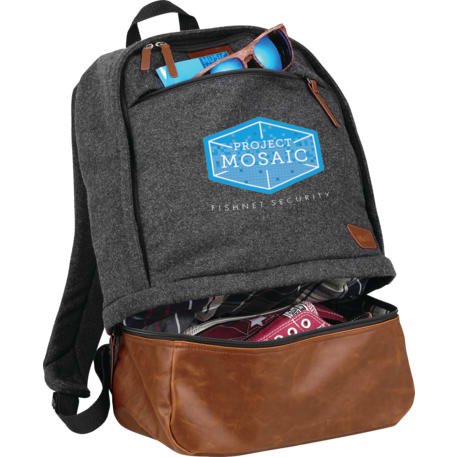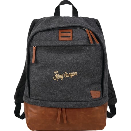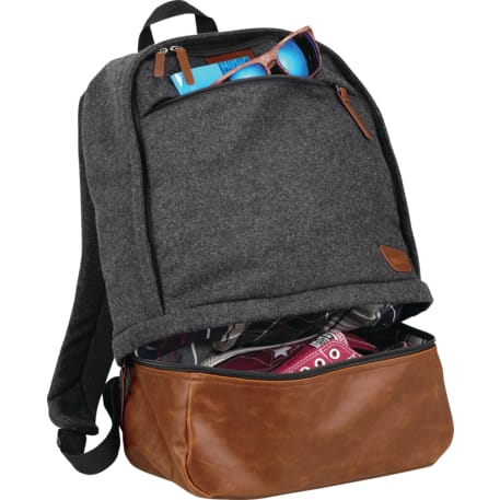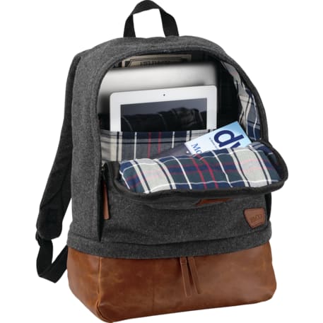 The Field & Co.® Campster Wool 15" Computer Backpack is part of the Field & Co. Campster Series, with inspiration drawn from retro camping and old school scout looks combined with modern needs. This backpack includes the stylization of a wool/poly material and vinyl accents to create a soft computer backpack with interior organization and a bottom drop pocket
