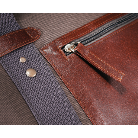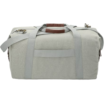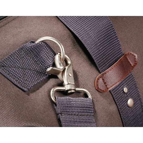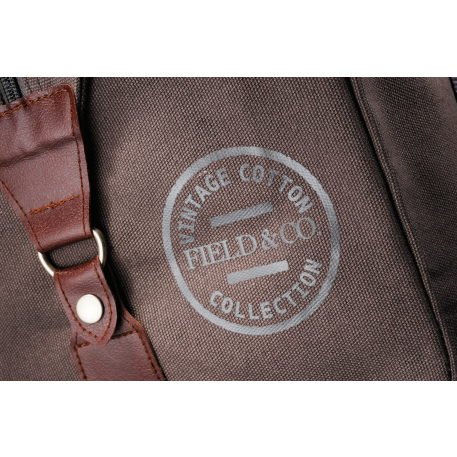 Made of cotton canvas, features a large main compartment and unique Field & Co.® details. Vinyl accents, front zippered pocket and durable handles. Sides can clip down when you are carrying less, or you can unclip the sides when the bag is fully stuffed. Also features trolley pass-through.