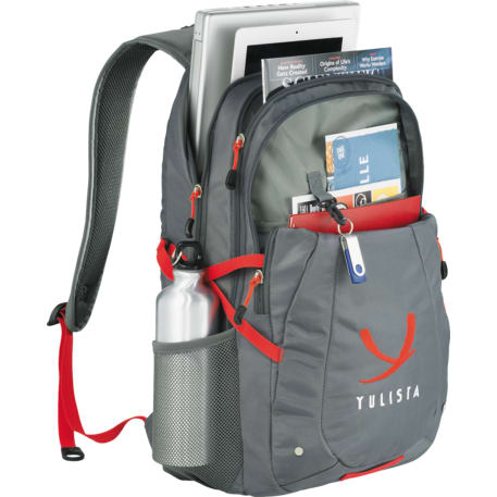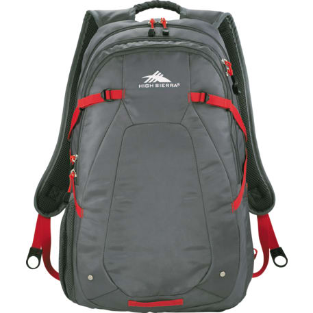 The High Sierra® Fallout 17" Computer Backpack features a large multi-compartment design and fully padded Cushion Zone™ computer sleeve that fits most 17 inch laptops. An integrated Tech Spot™ sleeve fits most tablets, including an iPad®. Comes with a core organizer with multiple pockets and a key fob, as well as a mesh beverage pocket and S-shaped, yolk style padded Vapel™ mesh shoulder straps with media pocket. Primary padded back panel. Adjustable side compression straps. Convenient grab handle. Front panel webbing loop for attaching extra gear. Includes lifetime warranty.