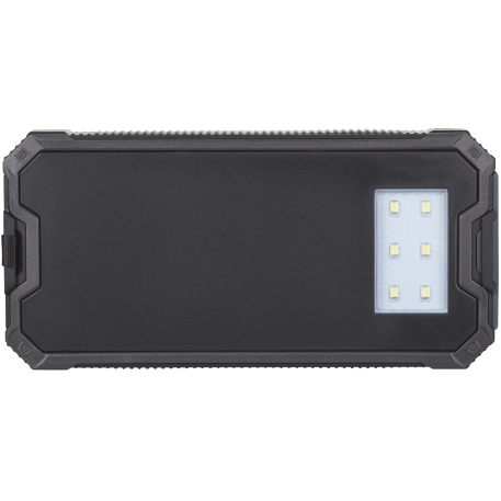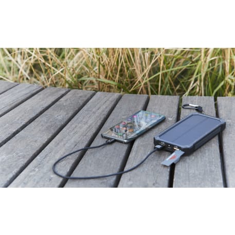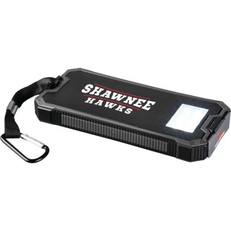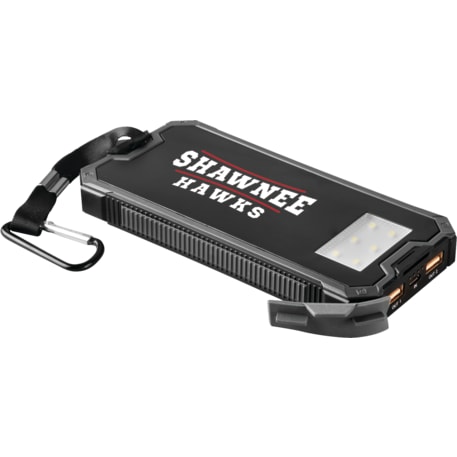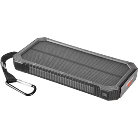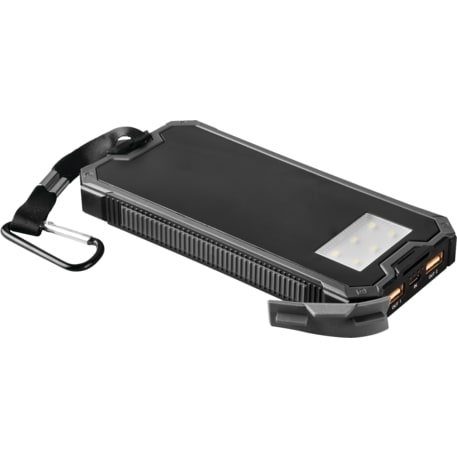 The High Sierra® Falcon Solar 10000 mAh Power Bank is a rugged, solar-powered Grade A Lithium Polymer battery backup (38Wh) and COB flashlight. With a 5V/2.1A output, you can charge a smartphone or tablet at the same rate as a wall charger. Includes a USB-to-Micro-USB connecting cable that can be used to charge the battery backup or devices with a Micro-USB input, like Android smartphones from Samsung®, Motorola®, HTC®, Nokia® and others. Color of solar panel may vary from every batch. Power banks are permitted in carry-on luggage only, and at the discretion of TSA agents. Please charge power bank before initial use.