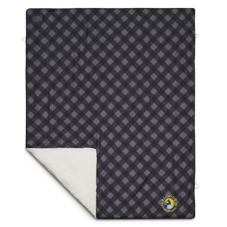 This High Sierra Sherpa blanket is one of the warmest available due to a 3 layer, quilted design that makes it perfect for indoor and outdoor use. Top layer is water resistant and a trendy plaid design, middle layer is cotton insulation, and under layer is a cozy Sherpa. Rolled up in a convenient package with nylon straps and laser engraved High Sierra aluminum clips, this blanket can travel with you anywhere. Blanket measures 50" x 60" unfolded and 10" x 14" folded. This blanket is spot clean only.