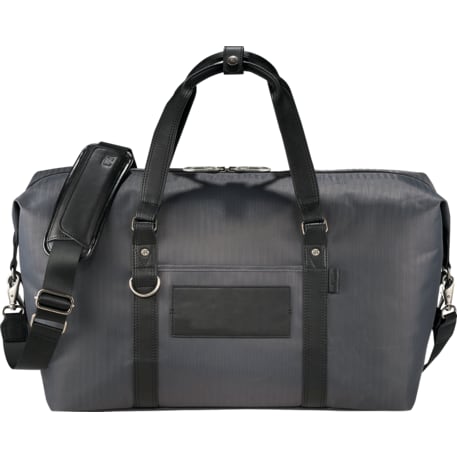 Durable performance herringbone twill with genuine leather accents give this a modern and sophisticated look to make you look good no matter where your travel takes you. Plenty of room for all your travel accessories, including a dedicated zippered pocket for your iPad/tablet. Custom Cutter & Buck® Pacific lining makes this bag unique and fashionable. Front zippered pocket to hold additional accessories. Bottom board with feet for added stability and protection. Satin nickel hardware with detachable, adjustable shoulder strap.