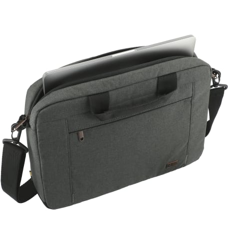 The Case Logic Era 14" Computer Attache is a slim laptop case for all workday essentials, perfect for the modern professional who likes to keep things simple and stylish. Take your laptop and tablet on the go with the padded storage for a laptop up to 14" and the dedicated slip pocket for a 10.5" tablet. Store your small essentials and phone in the quick-access front pocket. The removable, padded shoulder strap adjusts for a custom fit while the padded carry handles ensure comfortable transport. The luggage strap securely attaches slim case to most rolling luggage for when you're on the go. Mélange fabric, copper touchpoints and trim details create a modern professional look.