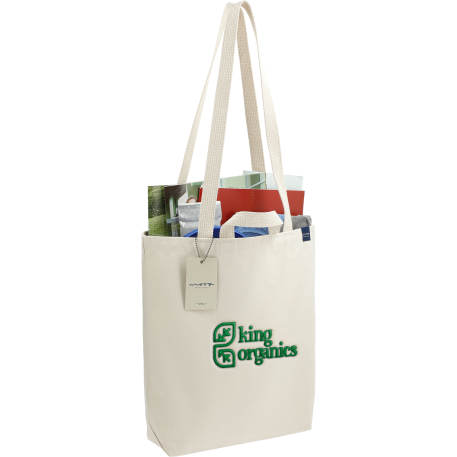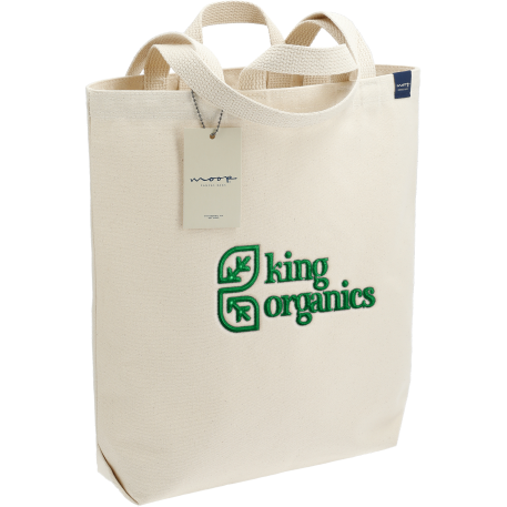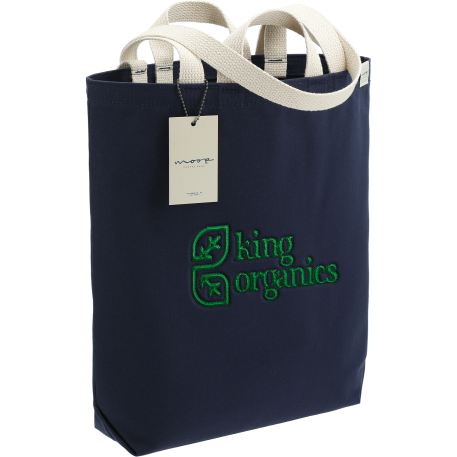 Designed and manufactured in downtown Pittsburgh, these Moop® totes are made from untreated 100% cotton 12oz duck canvas fabric. They have 100% cotton webbing handles with a generous 15" drop. Moop bags have a 14 year history of quality construction and durable materials from a female owned American small business. The Carson tote not only can be your go-to grocery companion but it is also large enough for your gym essentials or meet-ups at the coffee shop. Each tote has a removable retail hangtag.