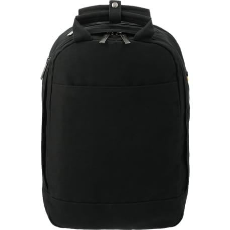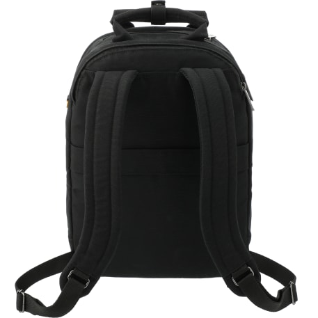 The Day Owl Slim 14" Computer Backpack Backpack is minimal on the outside, functional on the inside, sustainable all around. Designed for lighter, leaner days, the Slim Backpack carries just what you need, and nothing more. The Day Owl backpack is designed to carry you through your day, wherever it may take you. Every detail and material have been carefully curated to create the most functional backpack made in the most sustainable way. This backpack features a padded laptop pocket that fits up to a 14” laptop and a spill-resistant bottle pocket fits up to 750ml water bottles. The floating top pocket is perfect for glasses, lip balm, or other small items while the flat front pocket is great for your wallet, pens and stylus, or your reusable straw and cutlery kit.