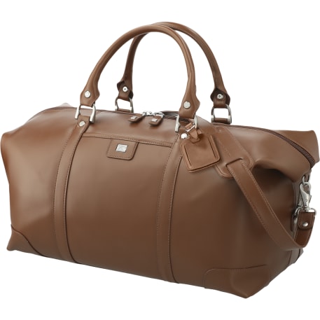 Roomy main compartment. Interior organizer. Includes genuine top grain leather identification tag. Bottom board with metal feet. Satin nickel hardware with detachable, adjustable shoulder strap.