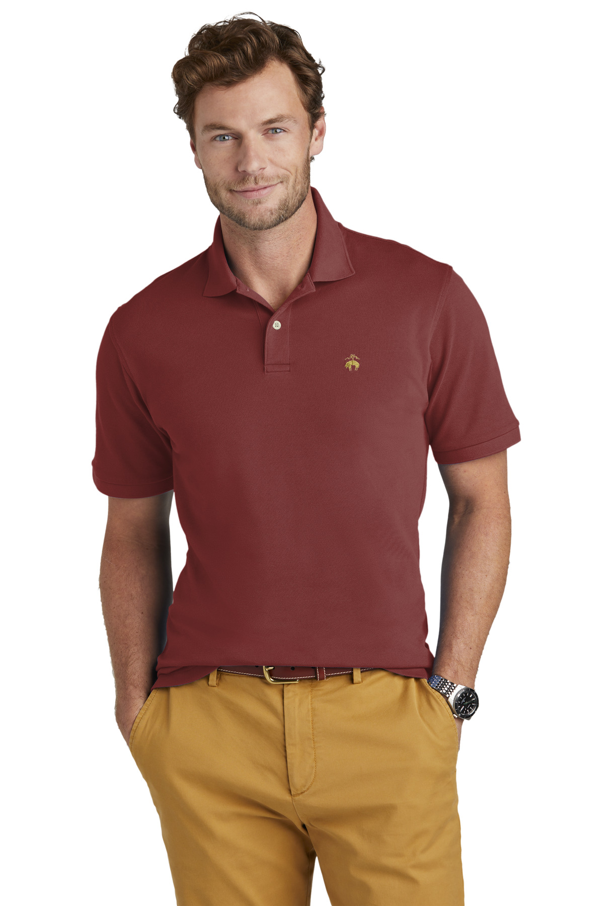 Luxuriously soft and supremely durable the Brooks Brothers pima cotton pique polo fits in as a stylish staple no matter how you wear it.6.5-ounce 96/4 pima cotton/spandex piqueFlat knit anti-curl collar and cuffsTwo-button continuous placketPearlized buttons with Brooks Brothers logoBrooks Brothers Golden Fleece logo embroidered on left chestDrop tail hem with side vents
