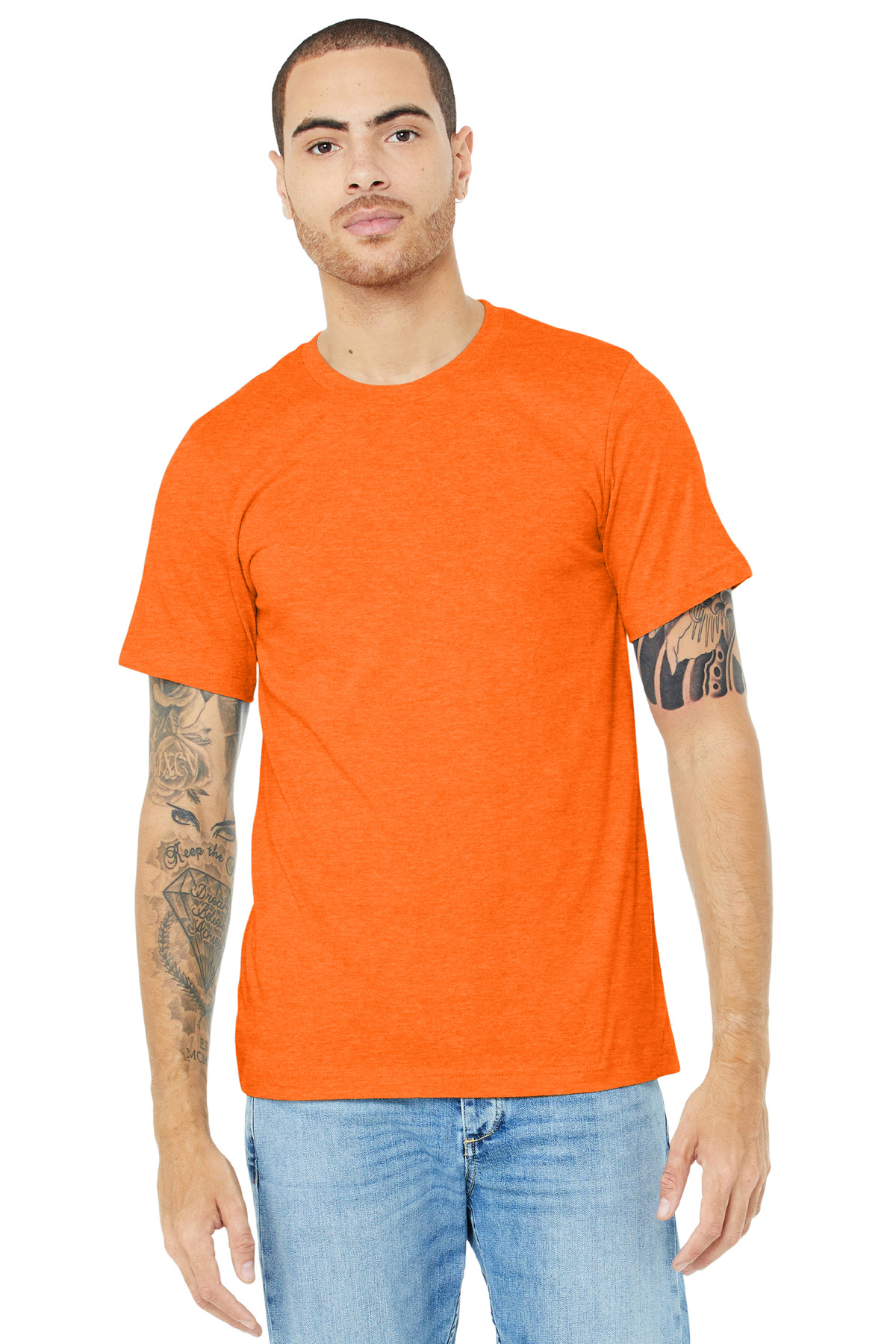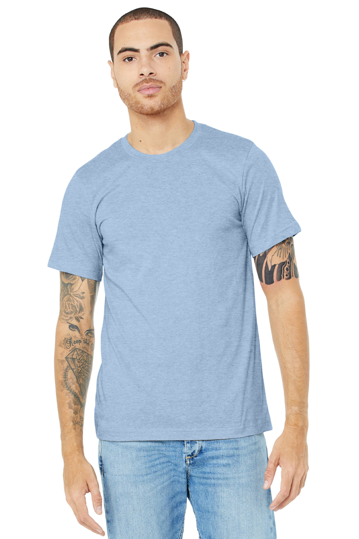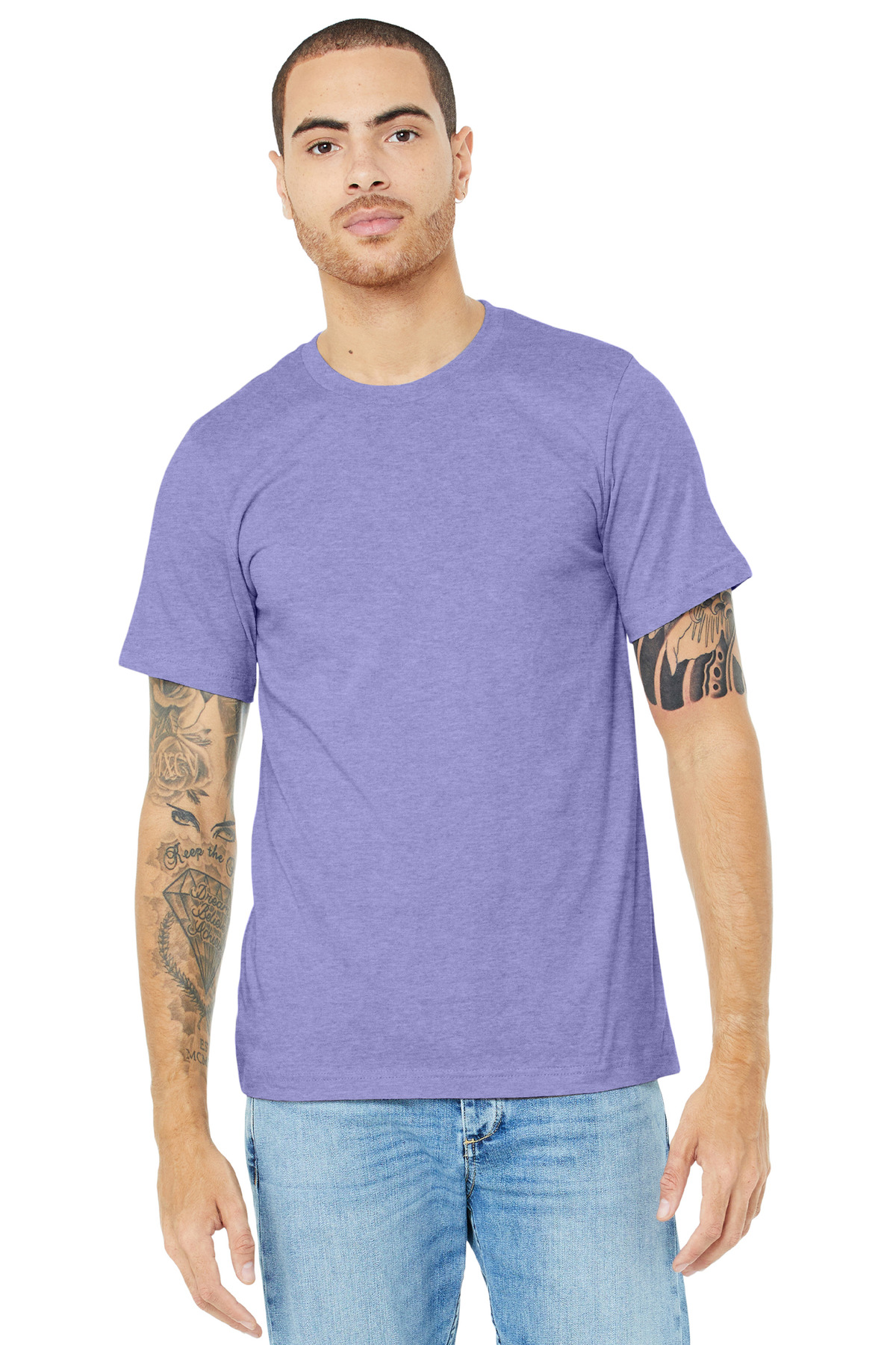 Retail fit Tear-away label Side seamed Shoulder taping Athletic Heather/Black Heather: 4.2-ounce 90/10 Airlume combed and ring spun cotton/poly 32 singles Heather CVC/Solid CVC Blend Colors: 52/48 Airlume combed and ring spun cotton/poly Prism: 99/1 Airlume combed and ring spun cotton/poly