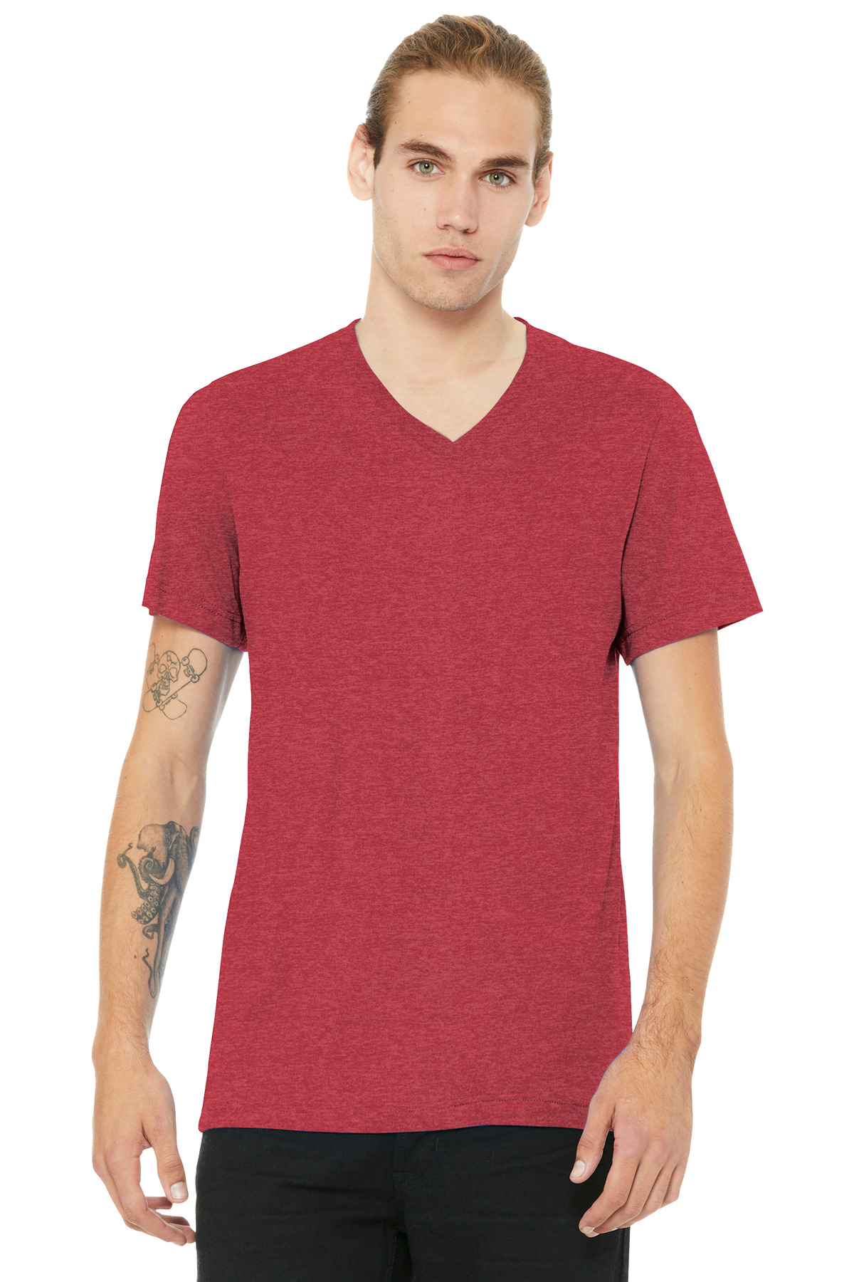 Retail fit Tear-away label Side seamed Shoulder taping Athletic Heather/Black Heather: 4.2-ounce 90/10 Airlume combed and ring spun cotton/poly Heather CVC Colors: 4.2-ounce 52/48 Airlume combed and ring spun cotton/poly