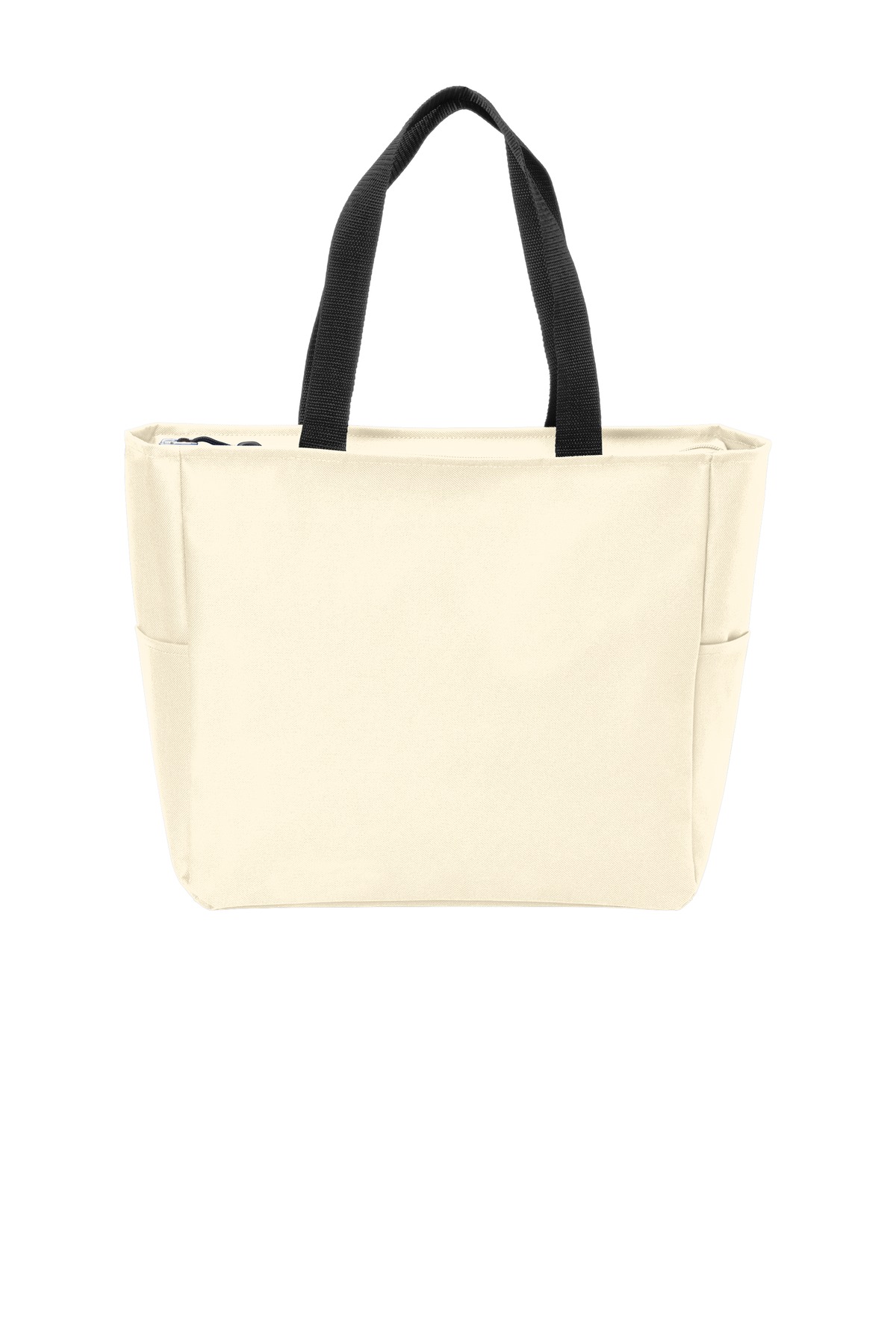 Theres plenty of room to hold the days essentials in this must-have tote that comes in lots of colors and features a secure zippered top closure. 600 denier polyester canvas Over-the-shoulder web handles Two large end pockets Dimensions: 12.5 h x 13.5 w x 6.5 d Approx. 1 097 cubic inchesNote: Bags not intended for use by children 12 and under. Includes a California Prop 65 and social responsibility hangtag.