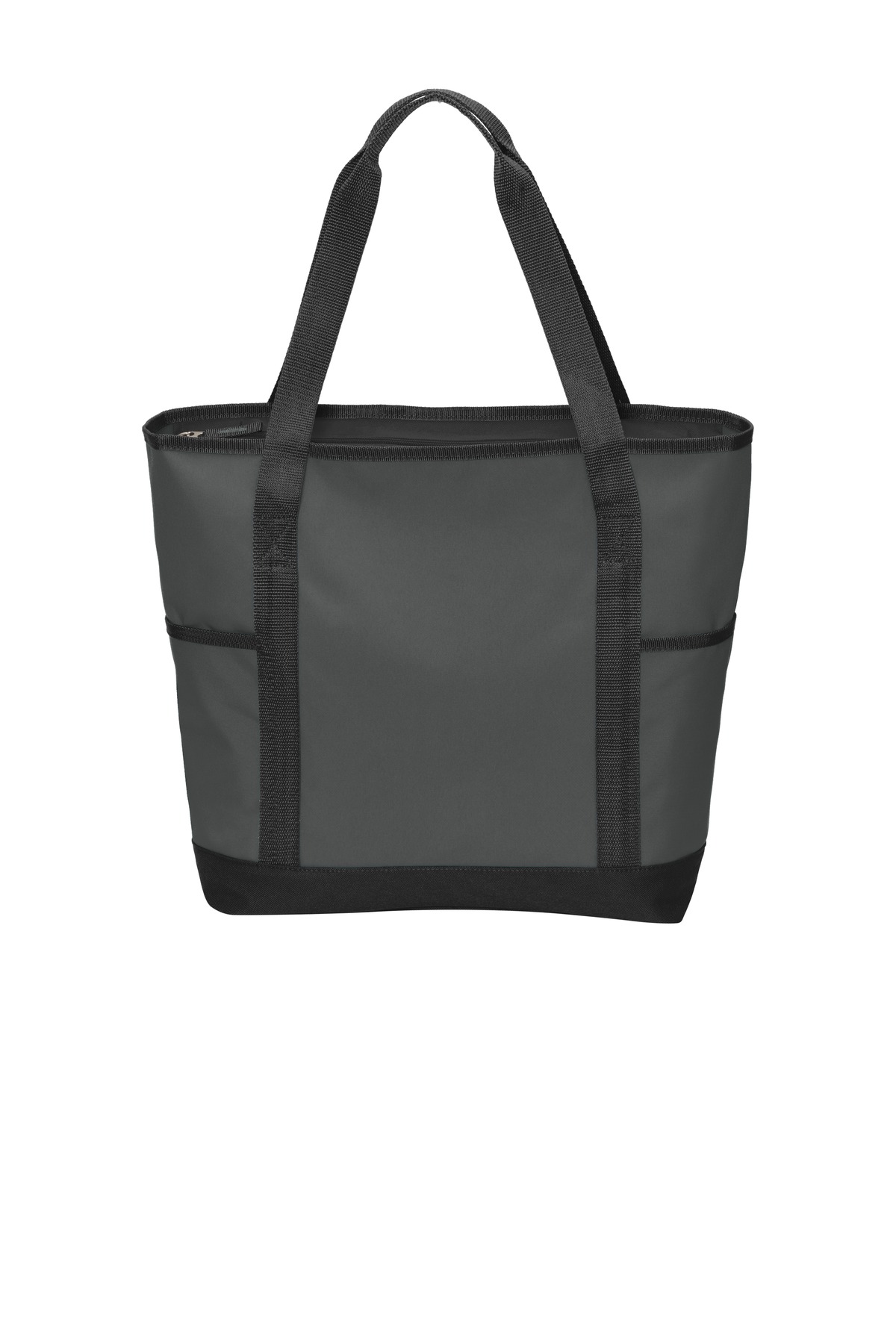 This sturdy zip-top tote keeps everything organized for an easier commute. 300 denier polyester canvas body 600 denier polyester canvas bottom Zippered top closure Reinforced over-the-shoulder web handles Dimensions: 14 h x 13 w x 6.5 d Approx. 1 183 cubic inchesNote: Bags not intended for use by children 12 and under. Includes a California Prop 65 and social responsibility hangtag.