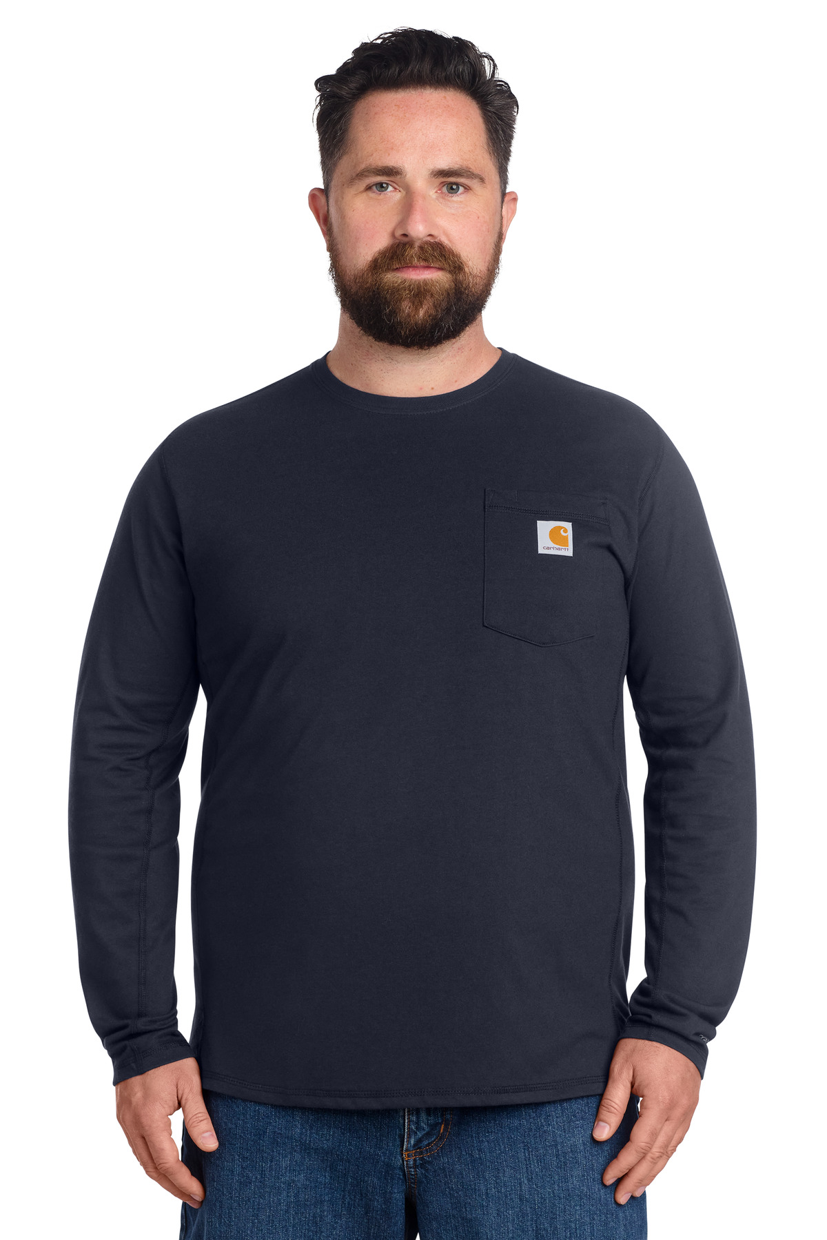 This midweight pocket tee fights sweat and is built for hard work thanks to Carhartt Force technology.Durable 5.75-ounce 65/35 cotton/poly stretch plaited jersey knit59/41 cotton/poly stretch plaited jersey knit (Heather Grey)60/40 poly/cotton stretch plaited jersey knit (Other Heathers)Carhartt Force technology wicks sweat dries fast and fights odorsFastDry technology keeps you cool for all-day comfortUPF 25+Raglan sleeves to increase range of motionLeft chest pocket with pen stallTagless neck labelSmooth flatlock seamsVentilated side panelsDrop tail hemCarhartt label sewn on left chest pocketCarhartt Force labeling on left sleeveRelaxed fit
