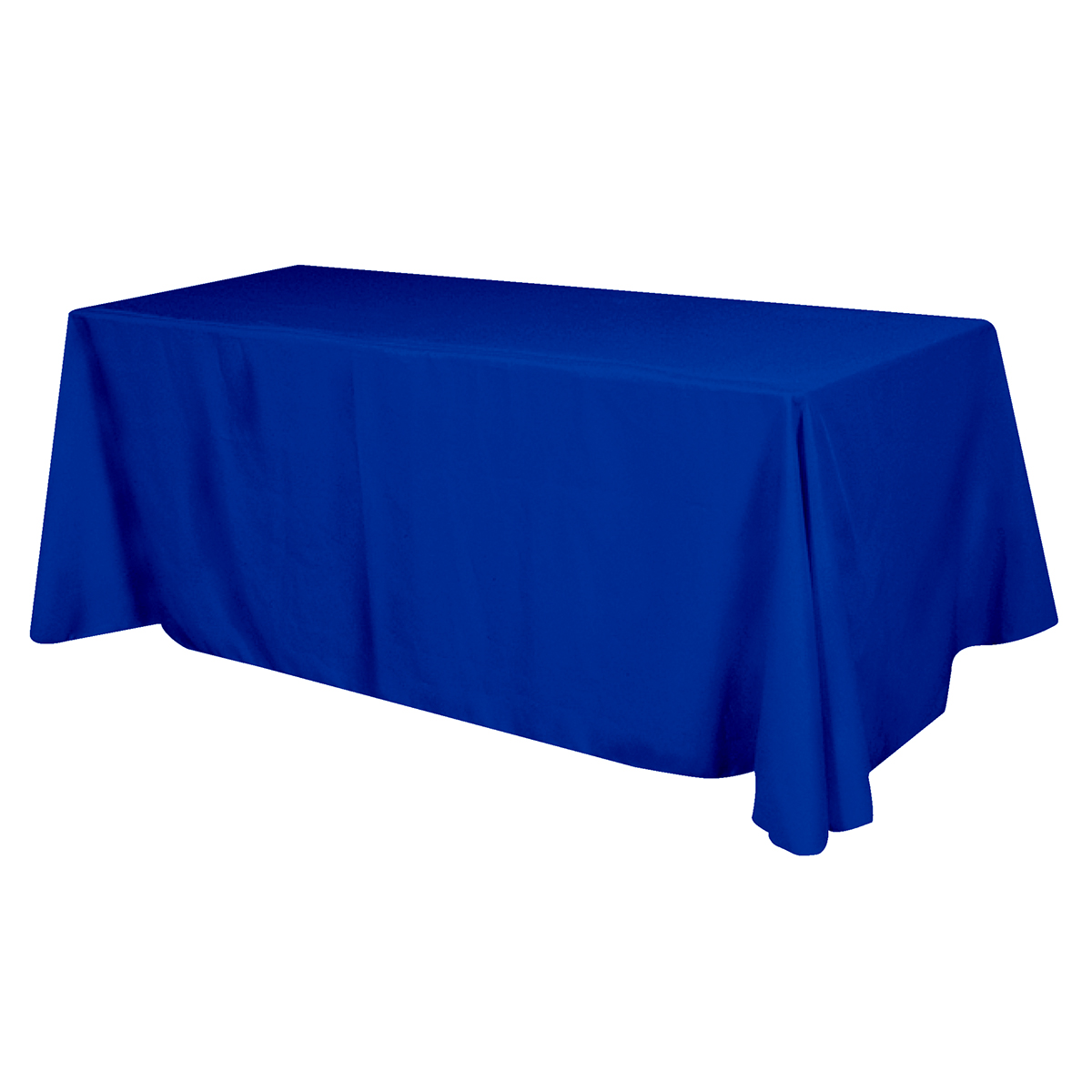 Made Of 100% Premium Quality Polyester (5 Oz. /Sq. Yard) | Fits Table Size: 96" W x 29" H x 30" D | Covers Four Sides Of A 8 Foot Standard Table | Rolled Hem, Safety Surged Non-Fray Seams And Rounded Corners | Washable | Flame Retardant NFPA 701 Standard | Easy To Store And Ship | Made in the USA with over 50% US parts
