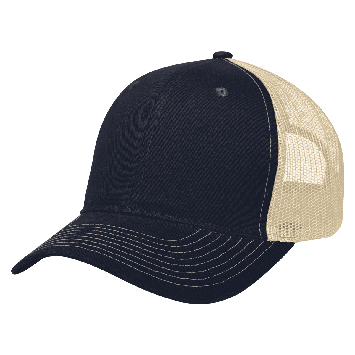 100% Brushed Cotton Twill Crown | 6 Panel, Low Profile | Structured Crown & Pre-Curved Visor | Mesh Back With Adjustable Plastic Snap Tab Closure