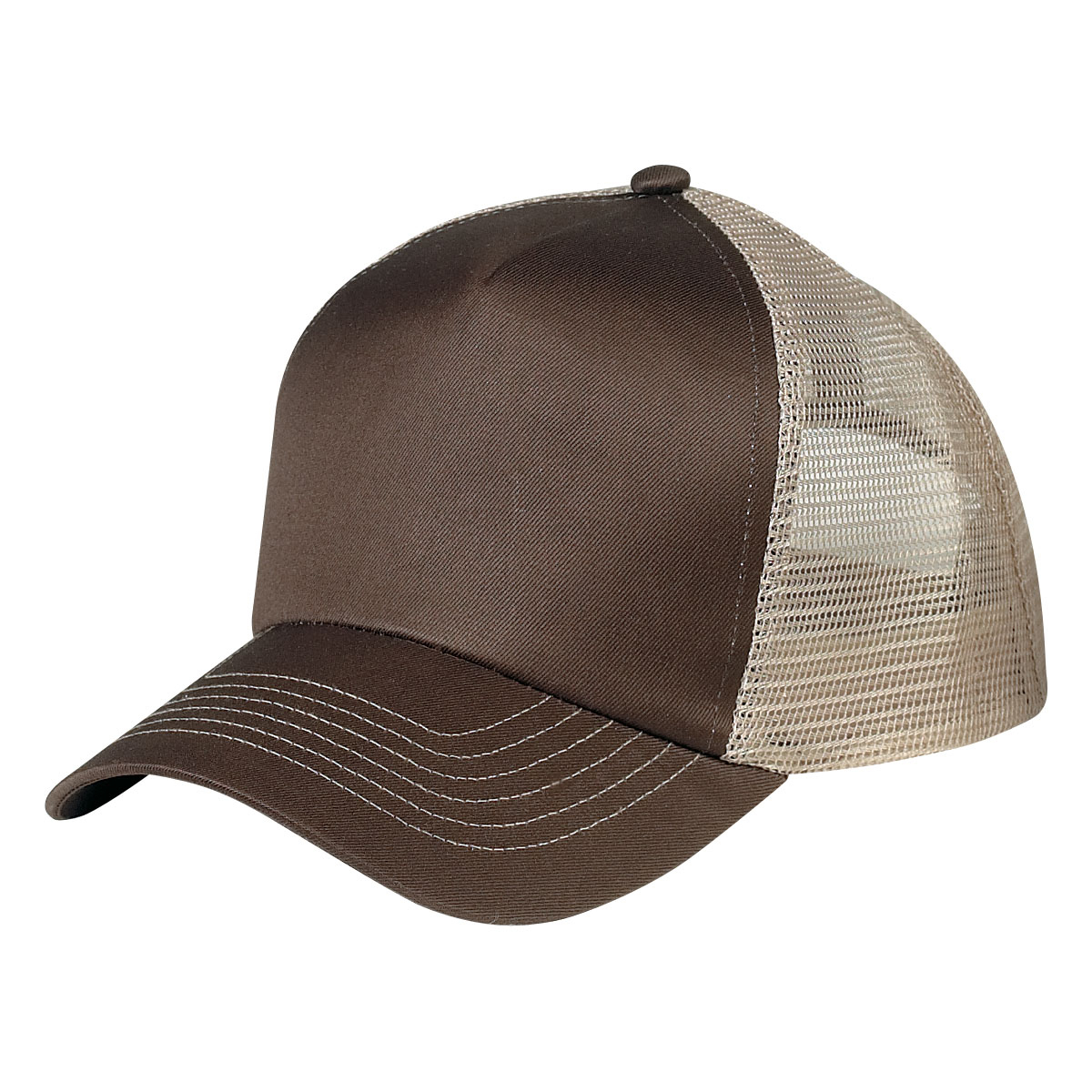 100% Brushed Cotton Twill Crown | 5 Panel, Medium Profile | Structured Crown & Pre-Curved Visor | Mesh Back With Adjustable Plastic Snap Tab Closure