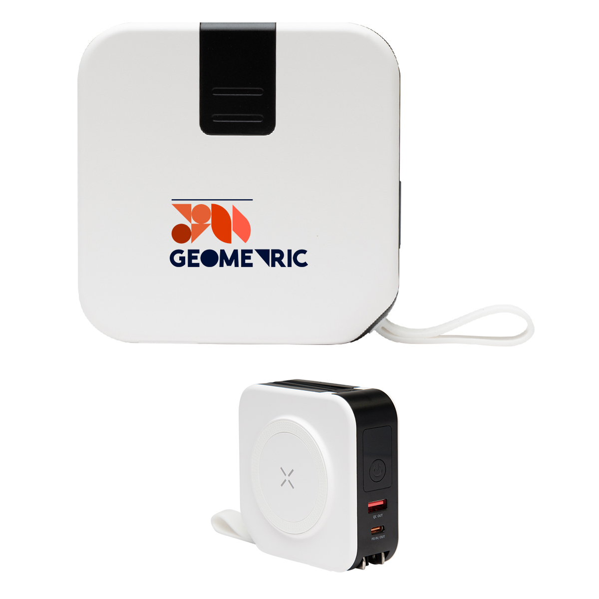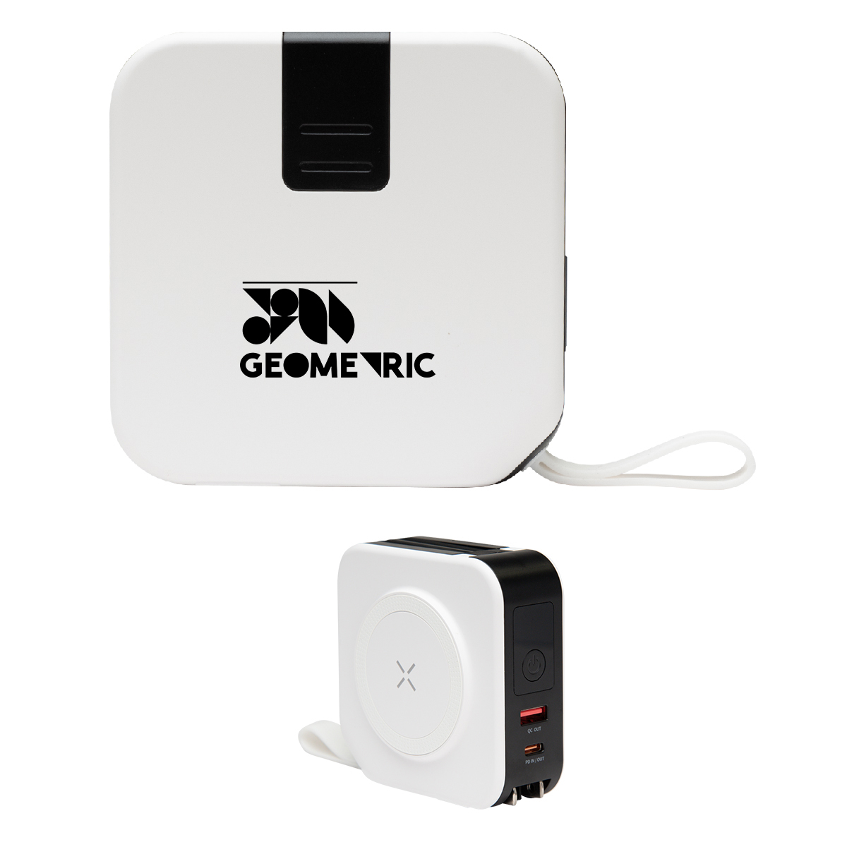 Includes Wall Charger, Magnetic Wireless Charger, Power Bank, Built-In Charging Cable And Phone Holder | Charge Qi Enabled Devices Wirelessly By Placing Compatible Device On Charging Pad | Internal Magnets Help Properly Align Your Phone For Wireless Charging (iPhone® 12 & Newer) | 10,000 mAh Lithium Ion Battery | Wireless Output 15W | Features Type-C, USB-A And Lightning® Outputs And Type-C And A/C Inputs | Apple, Lightning and iPhone are trademarks of Apple Inc., registered in the U.S. and other countries