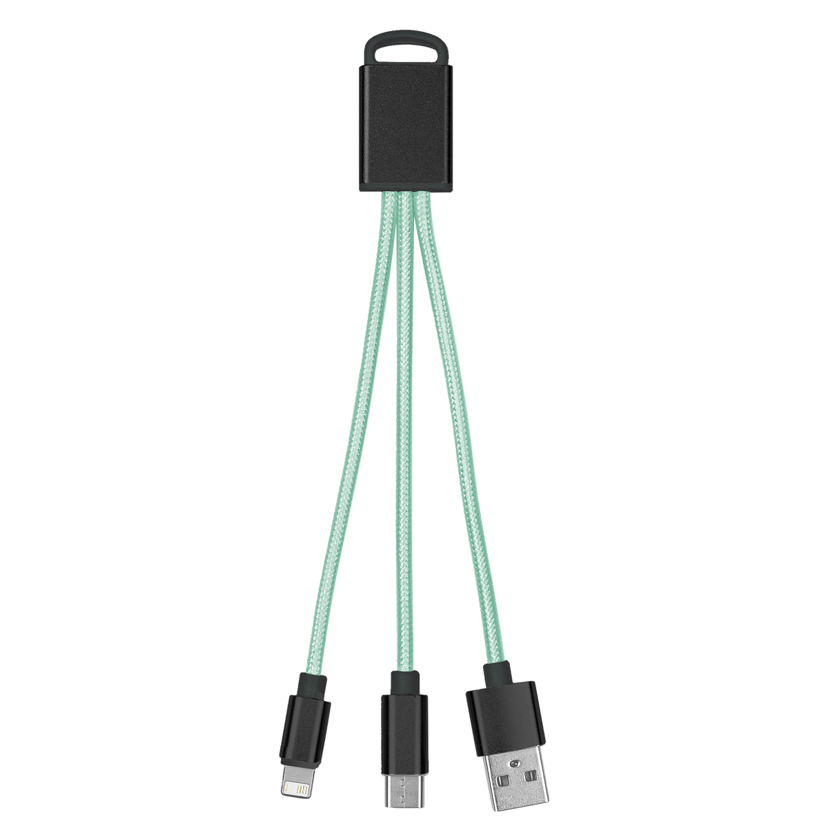 Compatible With Apple® 8-Pin, Micro USB And Type-C Devices | Simply Plug The Cable Into A Powered USB Port And Then Into Your Device Or Smartphone | Charge Multiple Devices At Once When Using An Ample Power Source | Apple is a trademark of Apple Inc., registered in the U.S. and other countries.