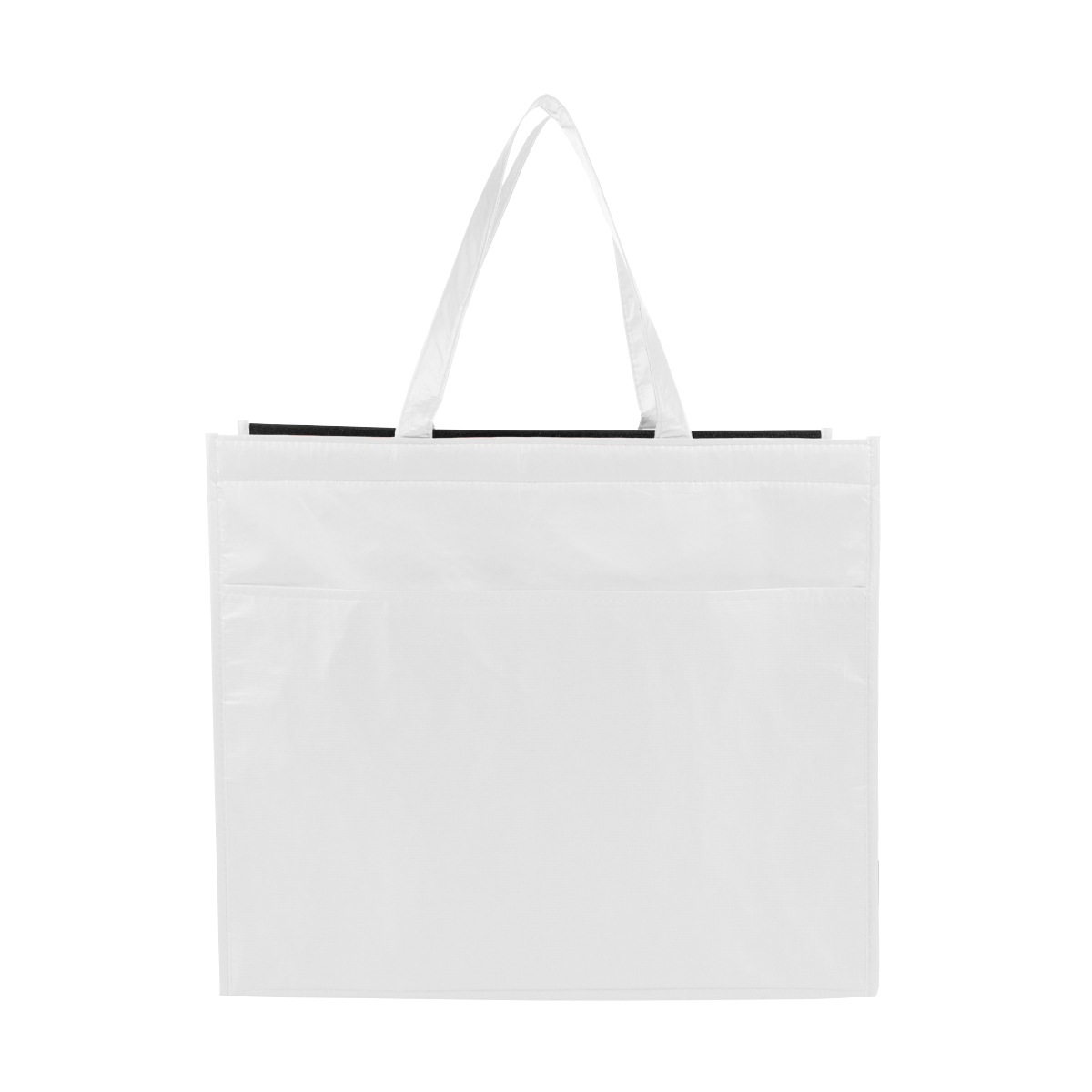 Made From Post Consumer Recycled Materials | Recycled Polyester (rPET) is Obtained By Melting Down Existing Plastic Bottles And Other Material Sources To Create New Polyester Fiber | Hook & Loop Closure | 17" Handles | Foil Laminated PE Foam Insulation