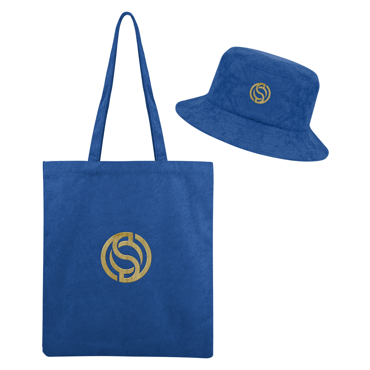 Set Includes #15039 Terry Bucket Hat and #30138 Terry Tote Bag | Pricing Includes Embroidery on #15039 Terry Bucket Hat and 1 Color/1 Location Imprint on #30138 Terry Tote Bag