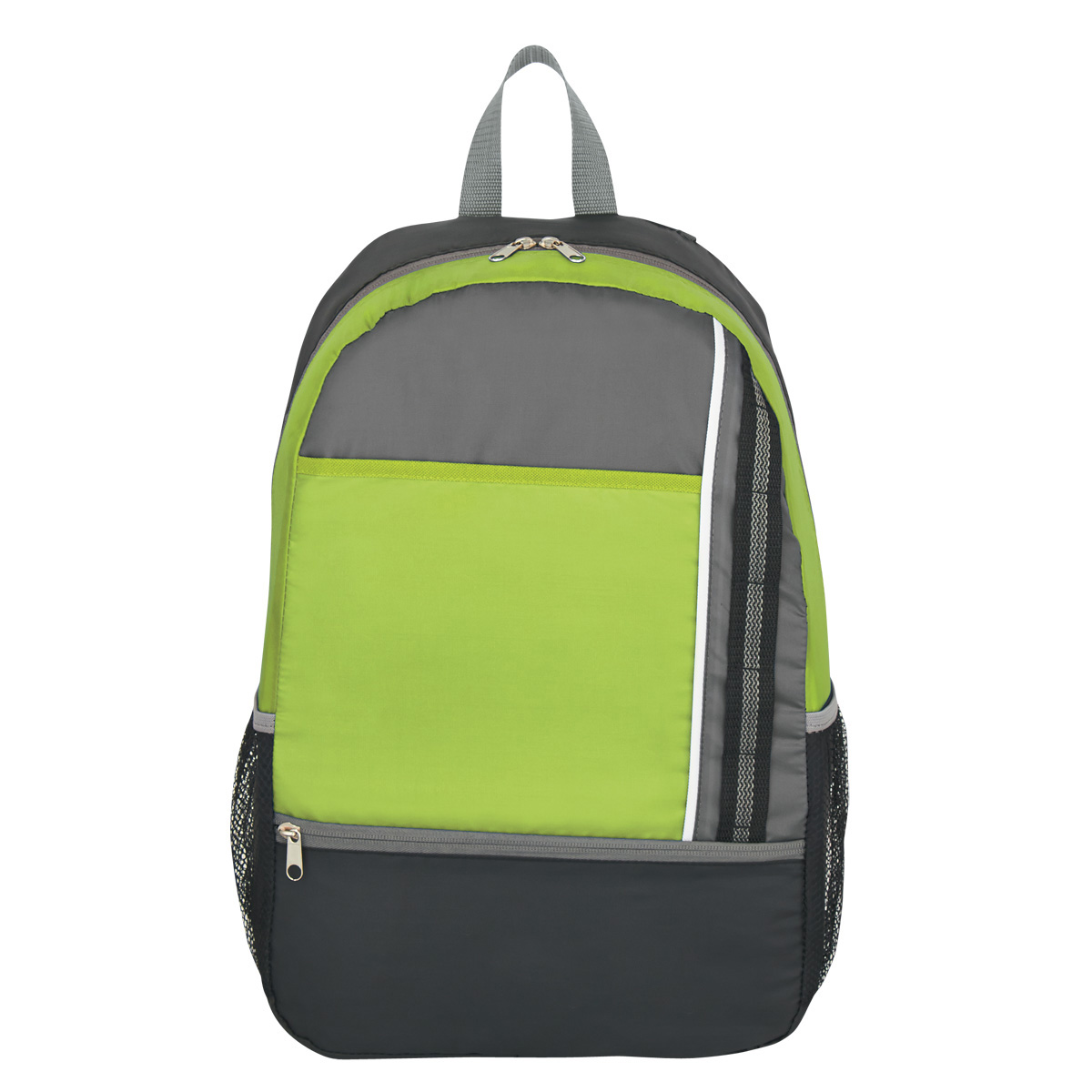 Made Of 210D Polyester | Adjustable Padded Shoulder Straps And Web Carrying Handle | 2 Side Mesh Pockets | Front Zippered Pocket | Double Zippered Main Compartment | Spot Clean/Air Dry