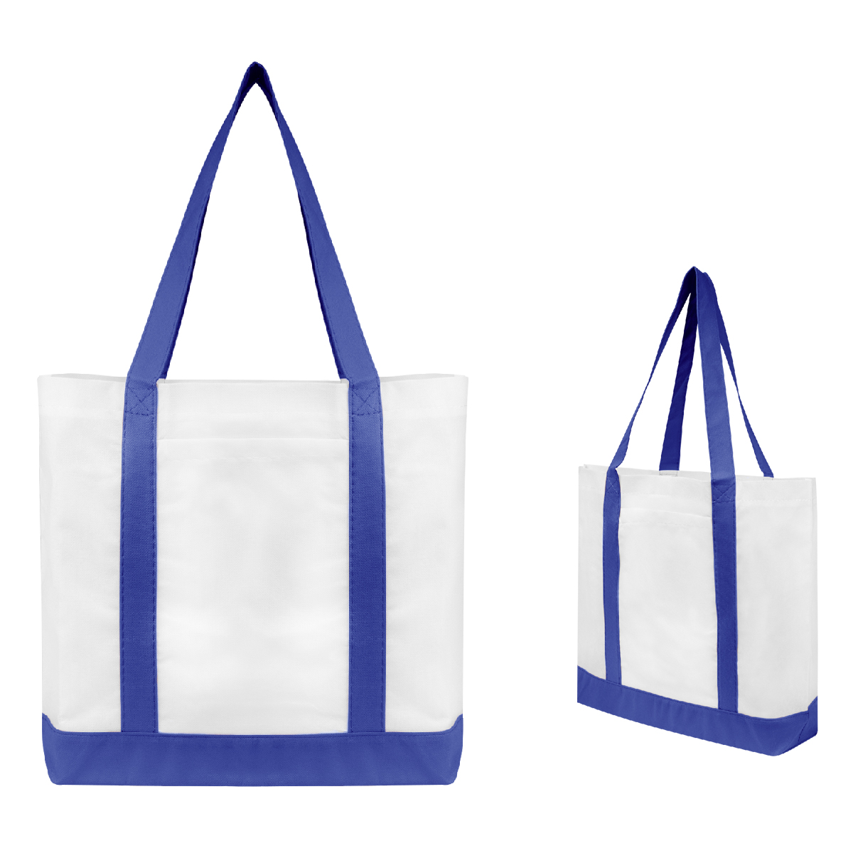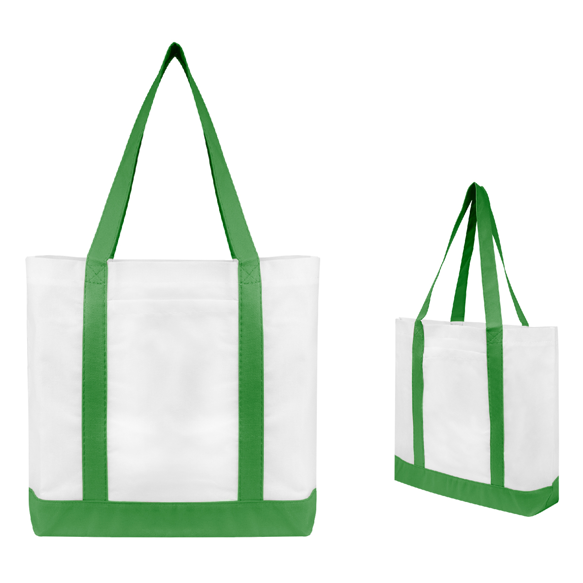 Made Of 80 Gram Non-Woven, Coated Water-Resistant Polypropylene | Front Pocket | 24" Handles | Spot Clean/Air Dry | This Material Is Recyclable In Limited Facilities In The US. Consumers Should Check Their Local Recycling Capacities Before Placing In Their Recycling Bins.