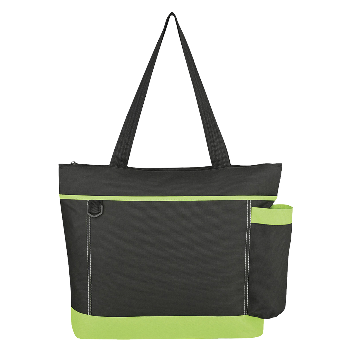 Made Of 600D Polyester | Top Zippered Closure | Large Front Pocket With Hook And Loop Closure | Large Side Bottle Pocket | Ring Attachment For Keys, Etc. | 25 ½" Handles | Spot Clean/Air Dry