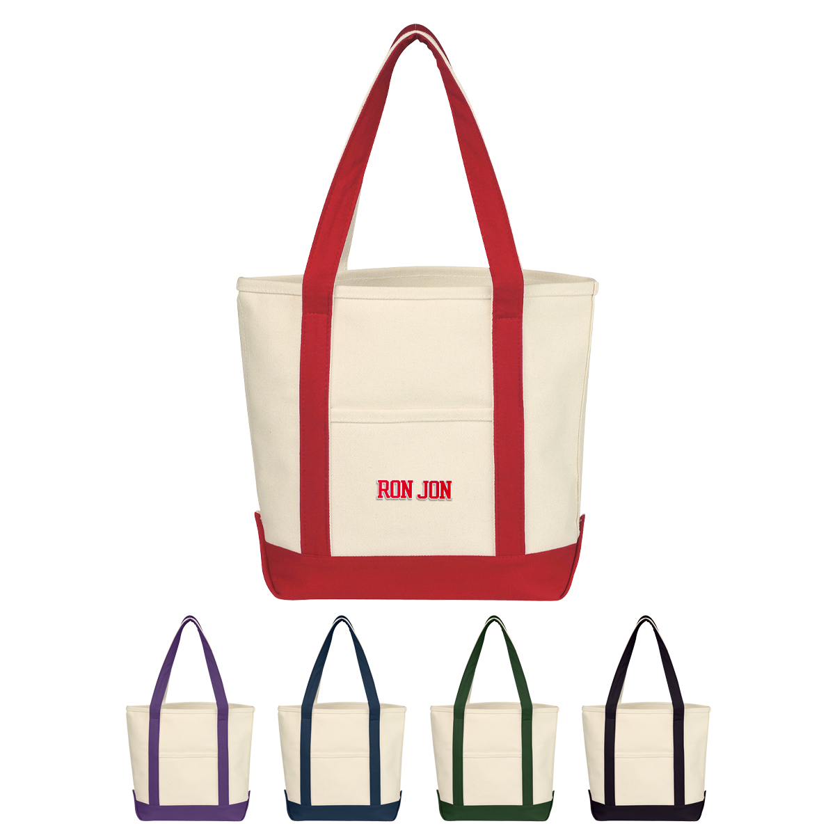 Small Heavy Cotton Canvas Boat Tote Bag With Tackle Twill Patch