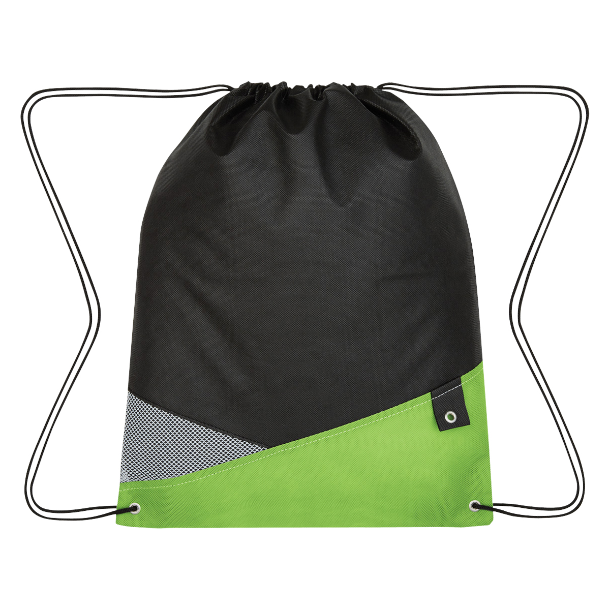 Made Of 80 Gram Non-Woven, Coated Water-Resistant Polypropylene | Mesh Triangle Accent | Grommet Attachment For Keys, Etc. | Reinforced Eyelets | Drawstring Closure | Spot Clean/Air Dry