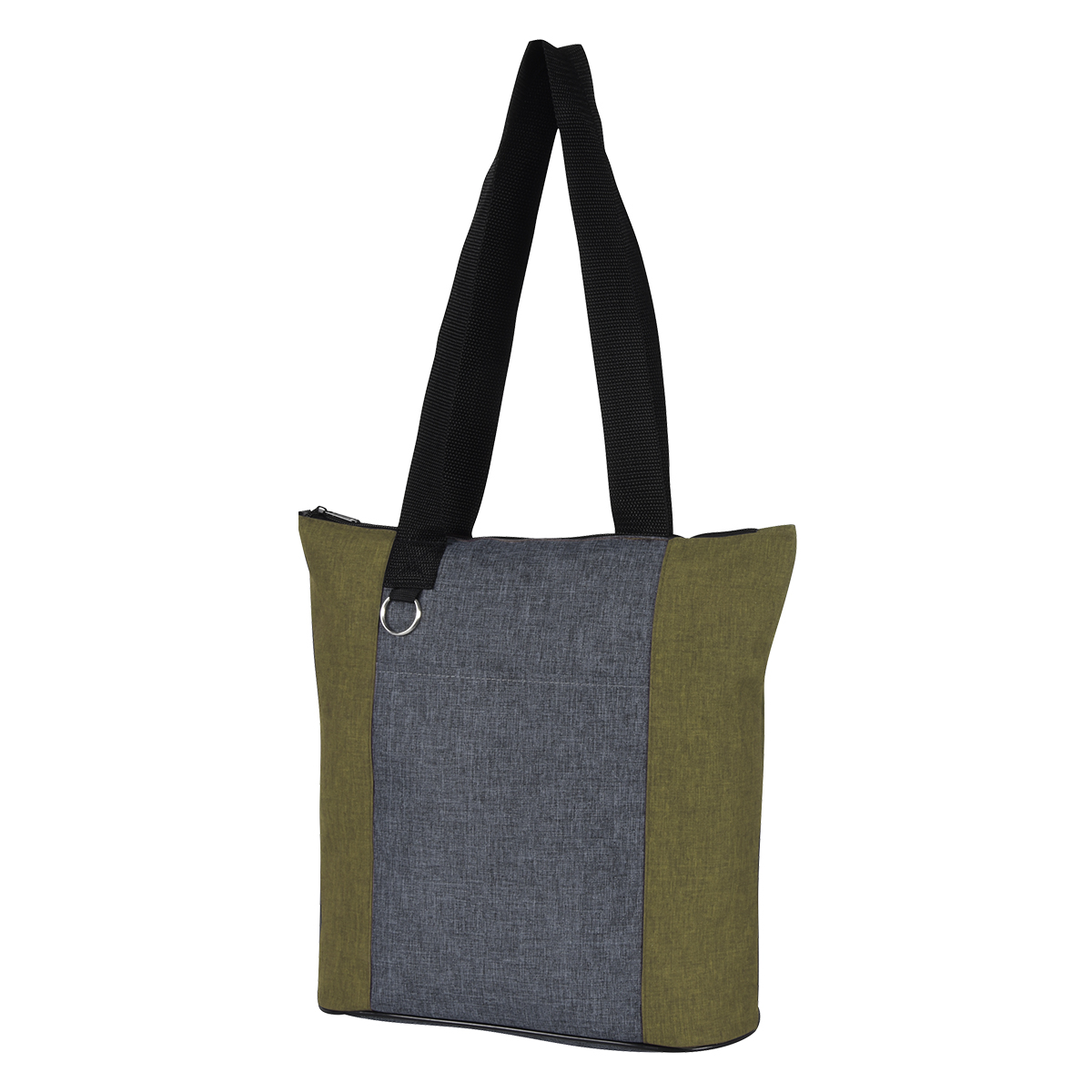 Made Of 300D Heathered Polyester | Top Zippered Closure | Front Pocket | Split Ring Attachment For Keys, Etc. | 26" Handles | Spot Clean/Air Dry