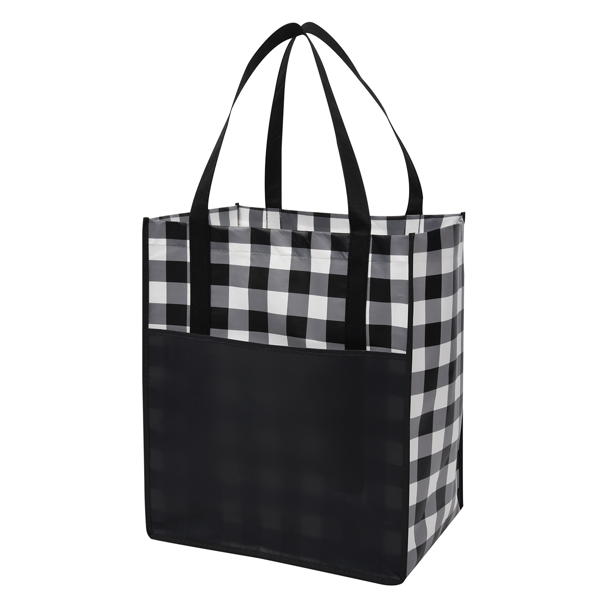 Made of 80 Gram Laminated, Non-Woven, Coated Water-Resistant Polypropylene | Large Front Pocket | 19" Handles | 10" Gusset | Spot Clean/Air Dry | This Material Is Recyclable In Limited Facilities In The US. Consumers Should Check Their Local Recycling Capacities Before Placing In Their Recycling Bins.