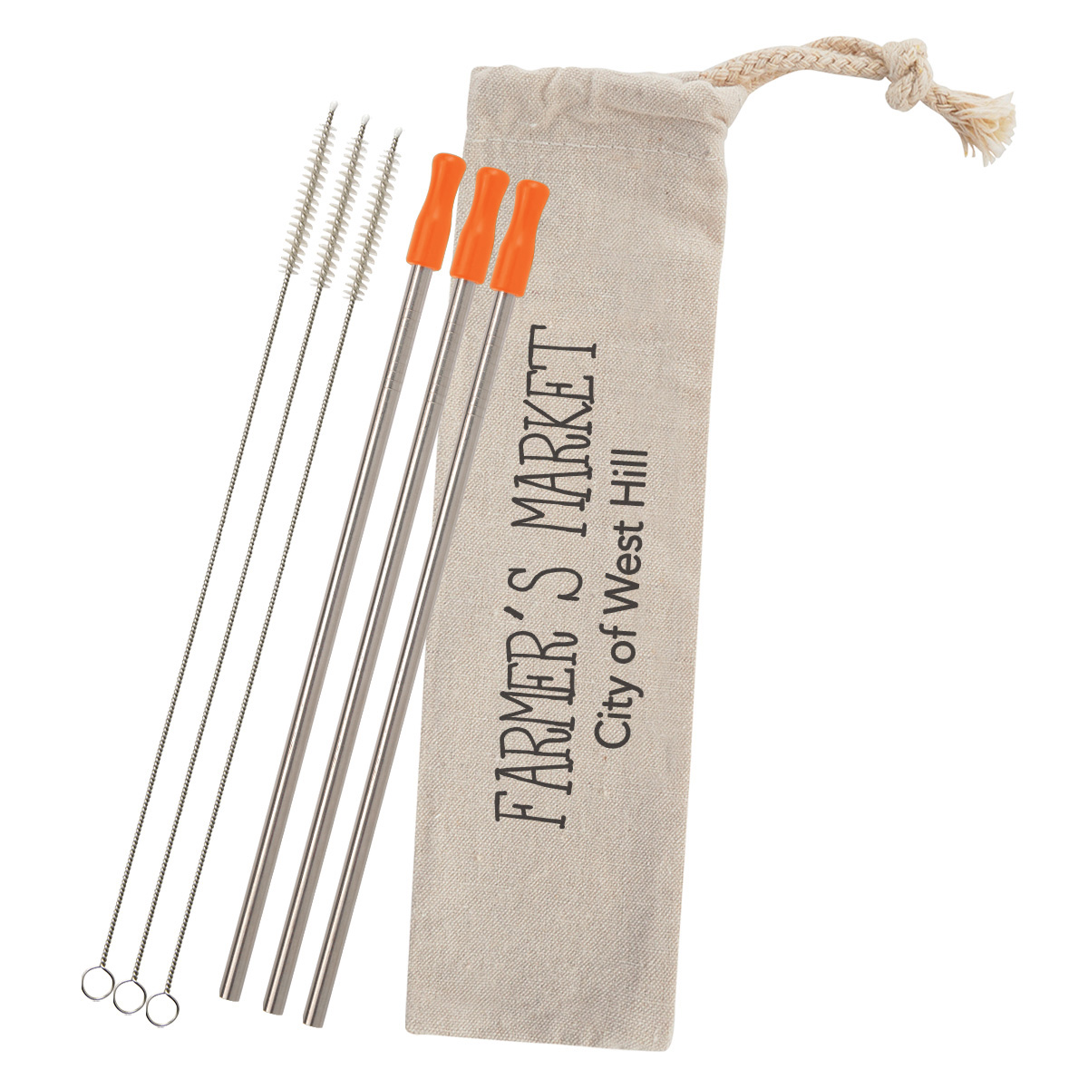 3-Pack Stainless Straw Kit with Cotton Pouch