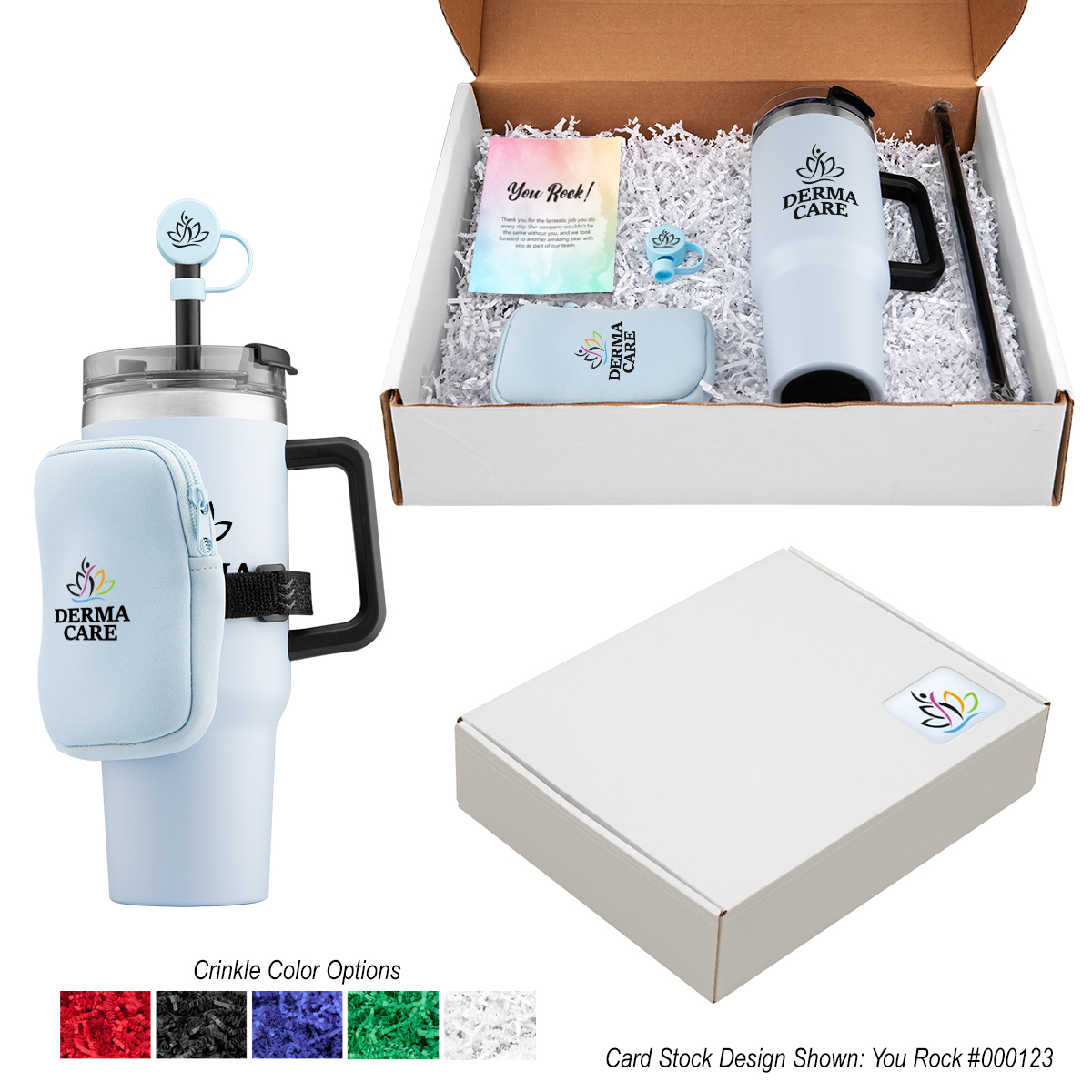 Set Includes #50035 - 40 Oz. Intrepid Stainless Steel Tumbler, #5276 Straw Topper For 40 Oz. Intrepid Tumblers And #30107 Intrepid Water Bottle Pouch | Pricing Includes 1 Color/1 Location Imprint On Each Item. Includes Mailer Box, Crinkle Stuffing, Insert Card, Box Label and Kitting. | Create Your Own Message With The Included Insert Card. Add Your Own Design or Choose From Any Stock Design. Optional Stock Design Shown
