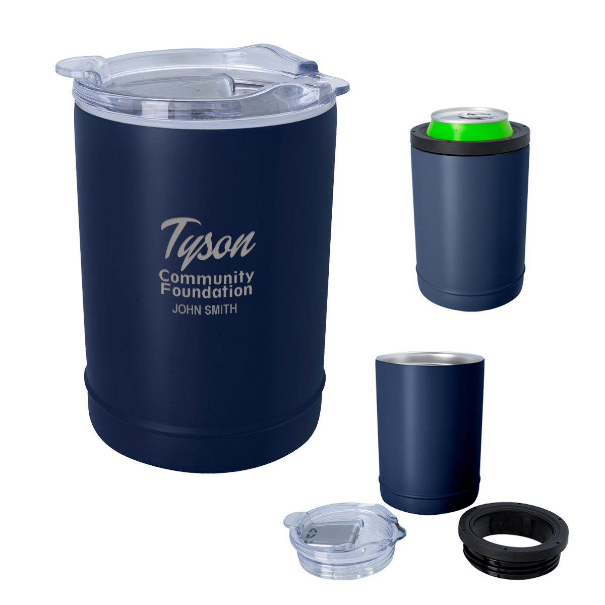 Made Of Stainless Steel With Copper Plated Inner | Functions As A Tumbler And Can Cooler | Vacuum Insulated Sweat-Proof Design | Double Wall Construction For Insulation Of Hot Or Cold Beverages For Hours | Keeps Drinks Cold Up To 24 Hours And Hot Up To 6 Hours | Includes Screw-On, Spill-Resistant Flip-Top Lid And Interchangeable Cooler Rim | Fits Most 12 Oz. Cans, Standard Bottles And Automotive Drink Holders | Replace the Cooler Rim With The Flip-Top Lid To Use As An 11 Oz. Tumbler | Meets FDA Requirements | BPA Free | Hand Wash Recommended