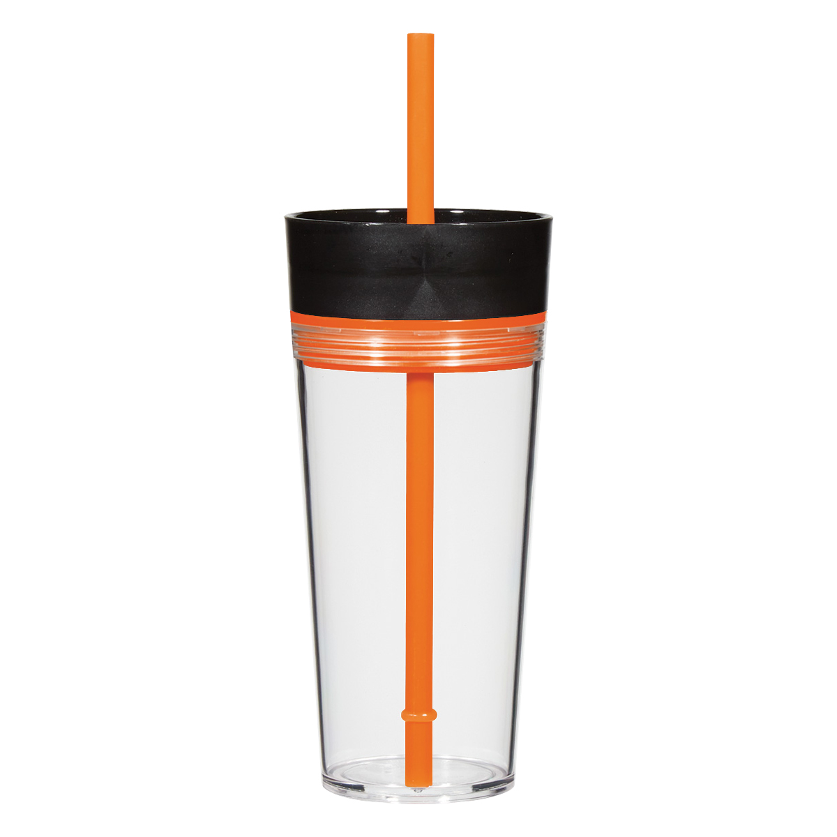 AS Material | Screw On, Spill-Resistant Thumb-Slide Lid With Matching 9" Straw | Lids And Straws Ship Separately And Unassembled | Meets FDA Requirements | BPA Free | Hand Wash Recommended