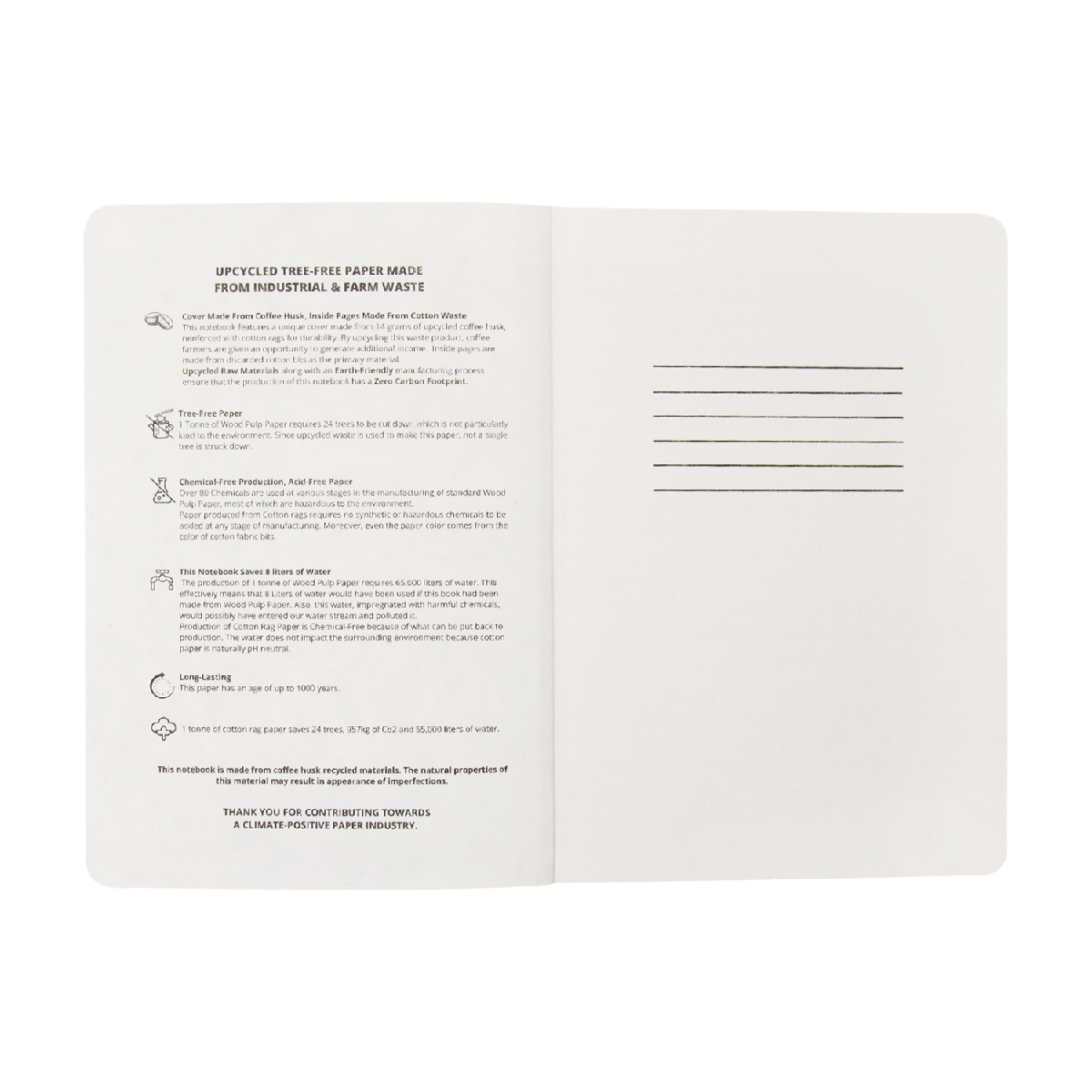 50 Page Lined Upcycled Journal | Cover Made From Upcycled Coffee Husk | Biobased Tree Free Cotton Pages